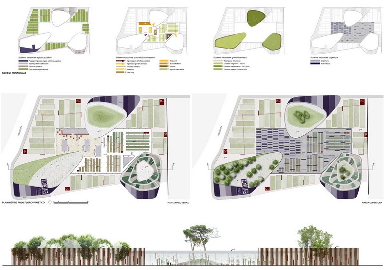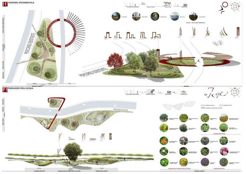 Dunque le forme dei giardini compatti sono desunte da una rilettura in chiave immaginativa del complesso sistema di paesaggio dei colli Euganei. Ridefiniscono una nuova identità collettiva che, proveniente dalla memoria e dal segno del paesaggio, proietta la città nel futuro secondo disegni e linguaggi contemporanei.
