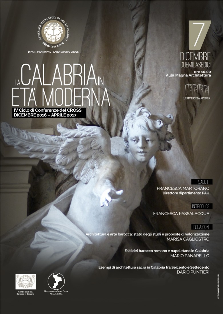 Il Laboratorio Cross, Storia dell’Architettura e Restauro, dell’Università Mediterranea di Reggio Calabria, con il patrocinio della Deputazione di Storia Patria per la Calabria e il Centro Studi sul Barocco in Calabria, avvia un ciclo di conferenze dedicato alla Calabria in età moderna, coordinato da Francesca Passalacqua.