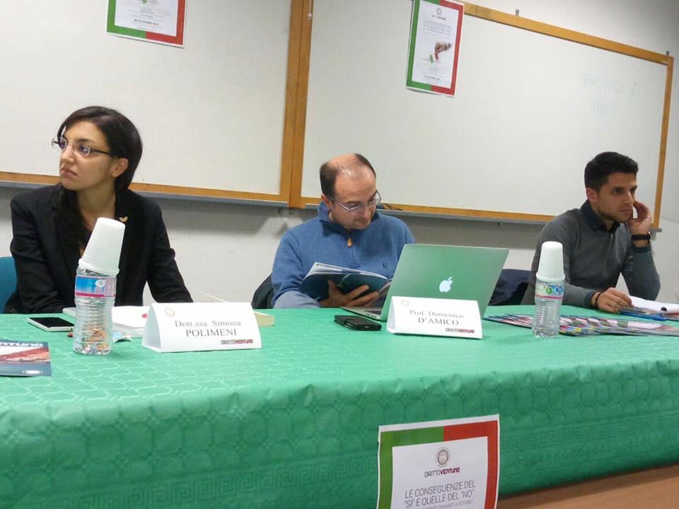 Un'esperienza formativa unica quella vissuta martedì 29 novembre, presso il Dipartimento di Giurisprudenza ed Economia dell'ateneo reggino: la redazione della rivista giuridica universitaria “Diritto21” - progetto giornalistico fondato e gestito dagli studenti – ha promosso e organizzato un proficuo dibattito sull'imminente Referendum costituzionale, con lo straordinario coinvolgimento di moltissimi studenti (nonché altri cittadini) che hanno attivamente partecipato alla discussione.