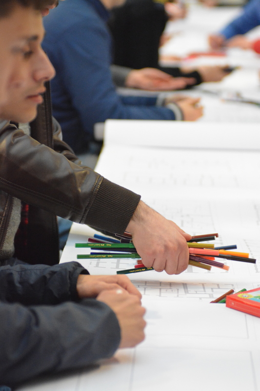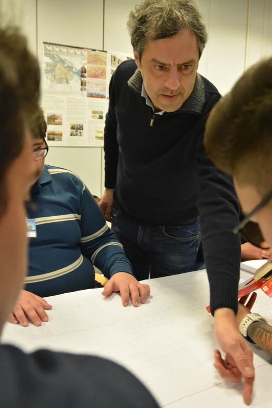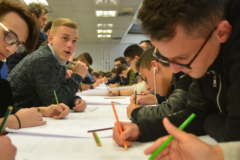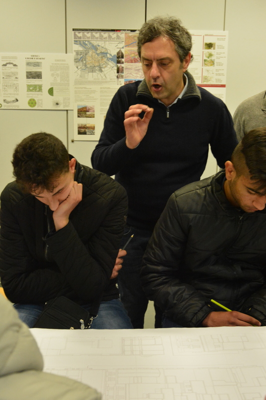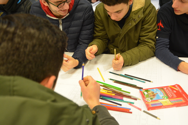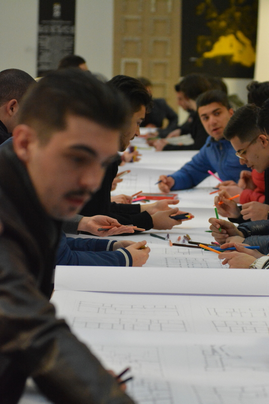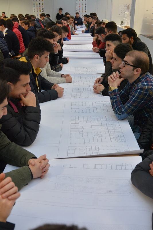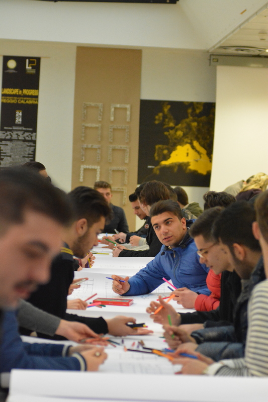 Non sono mancati i momenti creativi. I professori Colistra e Arena del DArTe hanno allestito due grandi tavoli da disegno di 14 metri ciascuno, per elaborare un disegno collettivo su due diversi punti di vista di alcune vie della città di Reggio Calabria, uno su pianta e l’altro in assonometria. Ogni giorno sarà realizzato un pezzo di città per trasmettere il valore fondamentale che l’aspetto della città è il frutto di un lavoro collettivo, dove ognuno partecipa con la sua piccola porzione. Esattamente come è nella realtà.