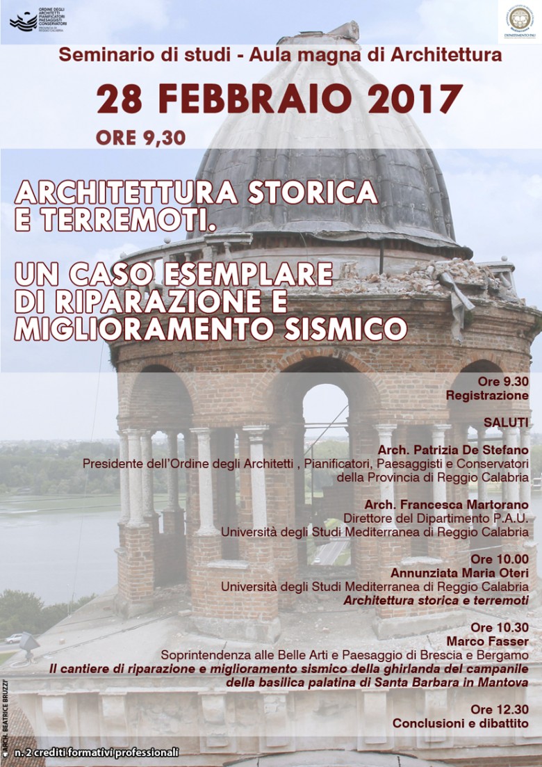Partendo da un caso concreto, l’intervento di miglioramento sismico della ghirlanda del campanile della basilica palatina di Santa Barbara in Mantova, l’iniziativa intende proporre una riflessione sul rapporto fra le legittime esigenze di sicurezza e l’altrettanto opportuna necessità di rispettare i valori dell’edilizia storica.