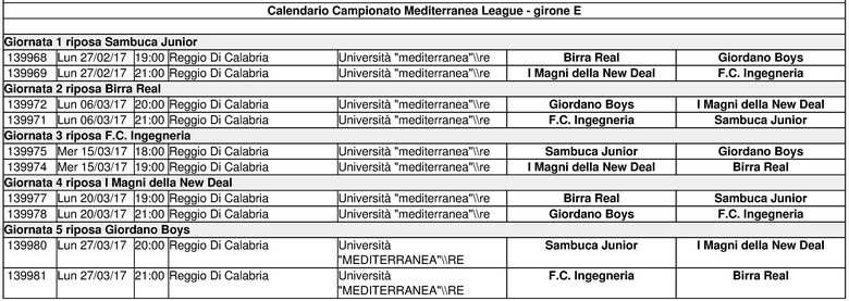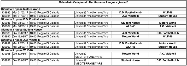 Il 27 febbraio inizia la prima edizione del nuovo campionato universitario di calcio a 5 “Mediterranea League”, promosso dal Consiglio degli Studenti, dal Centro fitness d’Ateneo, dal Cral Mediterranea in collaborazione con il Centro Sportivo Italiano di Reggio Calabria.