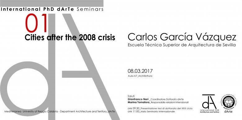 Si apre il ciclo International PhD dArTe- Seminars del Dottorato in Architettura e Territorio con la lezione del prof. Carlos Garcia Vàzquez della Università Partner_Escuela Técnica Superior de Arquitectura de Sevilla.