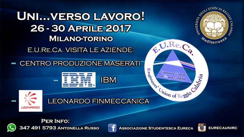 L' Associazione Studentesca Eureca grazie alla collaborazione dei professori Francesco Carlo Morabito e Sandro Rao e con il Patrocinio del Consiglio degli Studenti e dell'Università Mediterranea, organizza e propone un viaggio studio nelle città di Milano e Torino, per visitare le maggiori realtà industriali ICT: