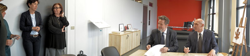 A seguire la firma della Convenzione siglata dall'arch. Micali ed il direttore del Dipartimento dArTe, prof. Gianfranco Neri, per lo svolgimento di tirocini curriculari pre-laurea all’interno del Gruppo di Progettazione incaricato allo sviluppo del progetto.