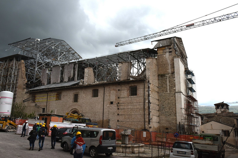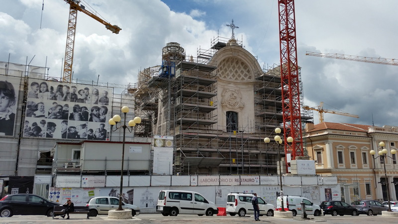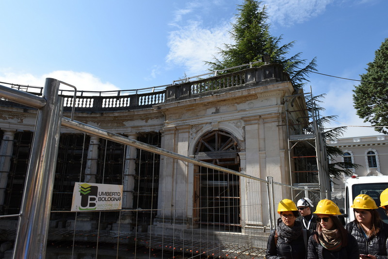 L’itinerario nel centro storico in ricostruzione dopo i danni del terremoto del 2009, curato dall’arch. Salvatore Amaddeo, funzionario del Ministero dei Lavori Pubblici distaccato presso la regione Abruzzo, ha consentito la visita ai cantieri del Consiglio Regionale (adeguamento sismico con isolatori dell’Emiciclo e dell’annesso ex convento) e dell’edificio ex GIL, ai cantieri dei sottoservizi dello smart tunnel (piazza Duomo e piazza del Teatro) al cantiere dei lavori di miglioramento sismico di Palazzo Cipolloni ed a quelli del restauro e miglioramento sismico di alcune chiese del centro.
