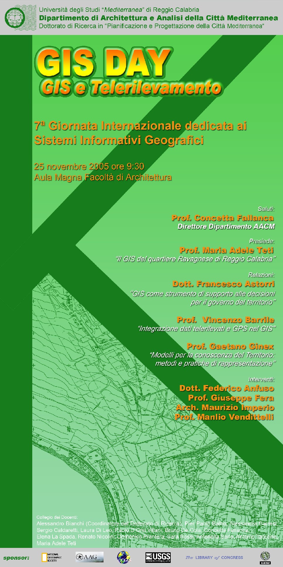 Aula magna della facoltà di Architettura il 25 novembre 2005 ore 9.30 7° Giornata Internazionale dedicata ai Sistemi Informativi Geografici GIS e Telerilevamento.