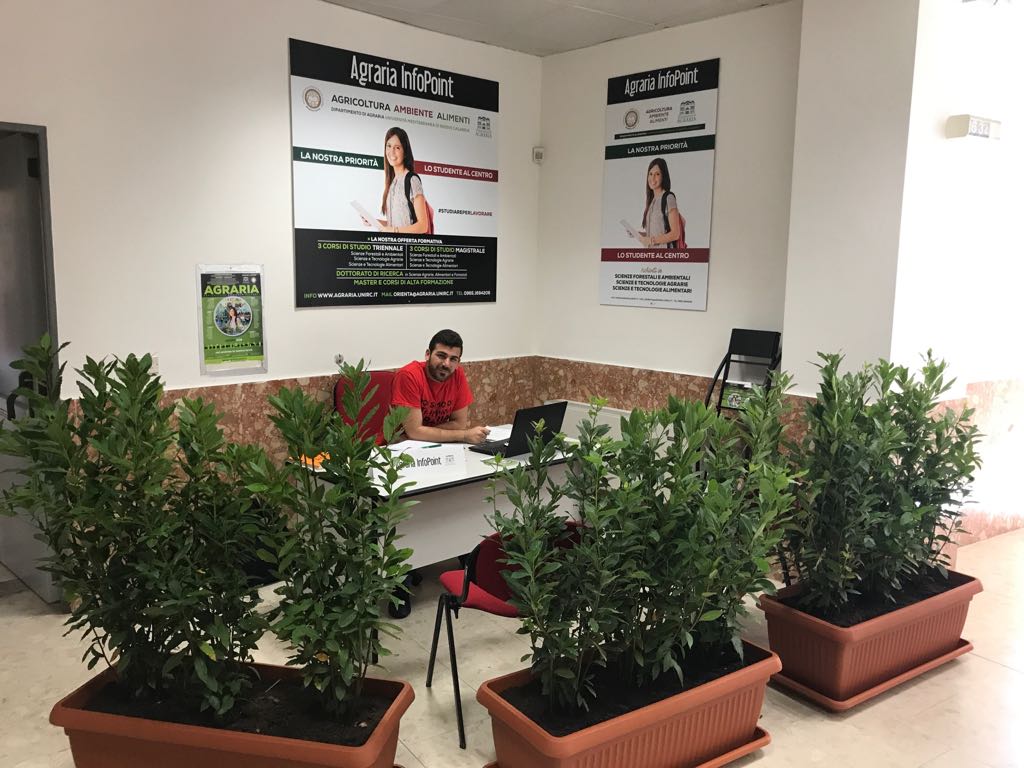 Agraria InfoPoint Immatricolazioni è lo spazio informativo del Dipartimento di Agraria dell’Università Mediterranea di Reggio di Calabria in cui vengono date informazioni sui corsi di Laurea, sul funzionamento delle strutture e dei servizi universitari.