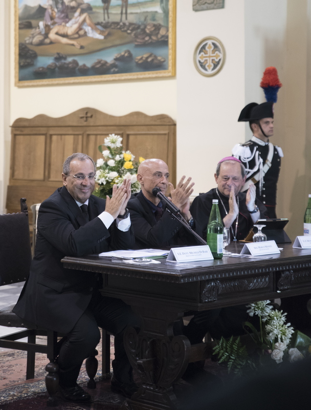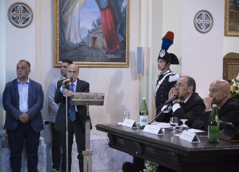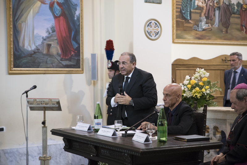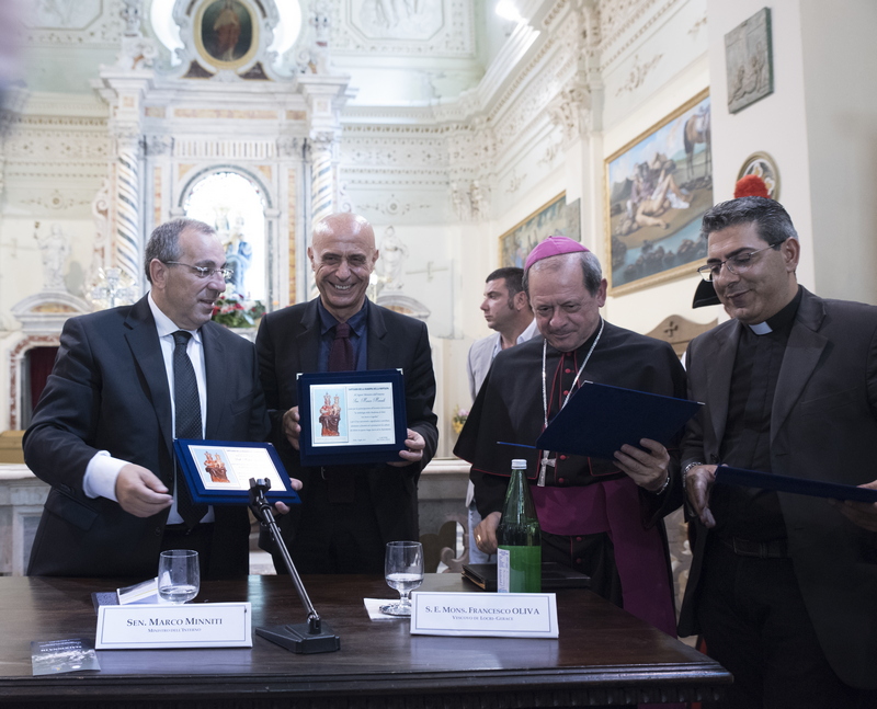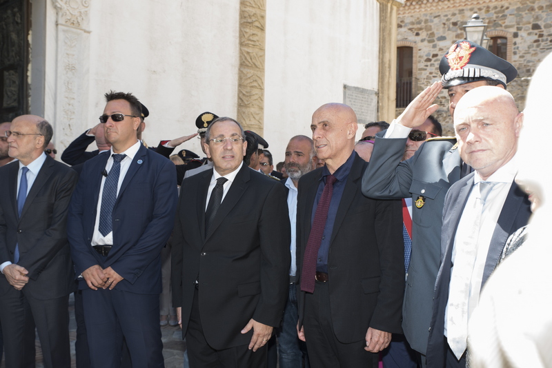 Con una cerimonia sobria ma densa di contenuti nello stile che caratterizza il savoir faire istituzionale del Prefetto Michele di Bari, lo Stato rappresentato nelle sue componenti civili e militari, ha riaffermato la presenza nei sacri luoghi del Santuario della Madonna di Polsi: non solo meta di fedeli e luogo intriso di sacralità ma anche avamposto di legalità. L’incontro ha assunto un significato ancor maggiore in considerazione dell’autorevole presenza del Ministro dell'Interno Sen. Marco Minniti, che ha testimoniato la presenza e l’attenzione del Governo verso il territorio. Nel corso del suo intervento il Ministro ha sottolineato il ruolo della cultura per la formazione delle attuali e future classi dirigenti della terra di Calabria e come leva sociologica sulla quale far convergere forze ed energie positive per pianificare lo sviluppo endogeno dei nostri territori. Particolare significato ha assunto in questa direzione, il plauso e il ringraziamento che il Ministro Minniti ha voluto rivolgere alla nostra Università e in particolare al Magnifico Rettore Prof Pasquale Catanoso per il prezioso, alacre e minuzioso lavoro, non solo pedagogico-formativo, svolto in questi ultimi anni dalle Componenti Accademiche nel (e per) il territorio. Su questo specifico punto anche il Prefetto Michele di Bari, in apertura dei lavori e nel corso dell'incontro ha più volte ribadito il ruolo strategico che la nostra Università sta svolgendo in seno alla piattaforma inter-istituzionale che vede coinvolti i vari attori pubblici per la realizzazione di iniziative importanti ed eccezionali a queste latitudini. L'Università Mediterranea rappresentata dal Magnifico Rettore Prof. Pasquale Catanoso, il Pro Rettore Vicario Prof. Santo Marcello Zimbone, dal Direttore generale Prof. Ottavio Amaro e soprattutto da un folto e qualificato gruppo di studenti e personale amministrativo, ha anche in questa memorabile (per contenuti, contesto e finalità) occasione svolto un ruolo nevralgico per l'organizzazione e la buona realizzazione dell'iniziativa. Particolarmente apprezzato per i suoi contenuti e la spontaneità dimostrata, l'intervento della neo laureata in Architettura Dott.ssa Ester Mussari già Rappresentante degli studenti in seno al Consiglio di Amministrazione di Ateneo.