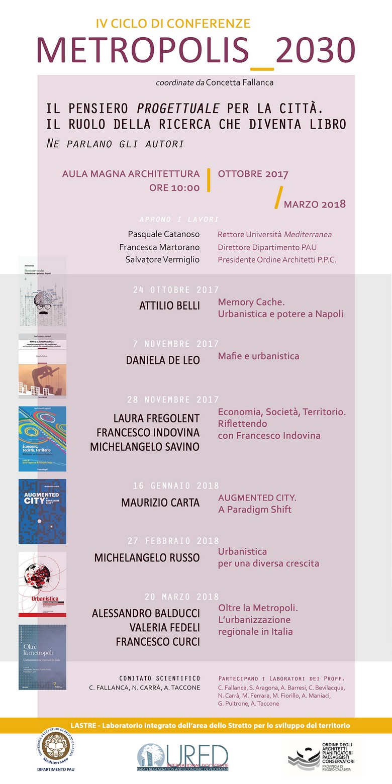 Al via il IV ciclo di conferenze che si concluderà a marzo 2018, dedicato al tema della città metropolitana e al contributo della ricerca universitaria che offre come esito una pubblicazione scientifica per avere l’occasione di parlare diffusamente del pensiero progettuale dedicato alla città e al territorio custodito nei libri disciplinari. L’iniziativa vuole condividere queste esperienze con il mondo accademico, gli studenti dei laboratori didattici, i colleghi professionisti.