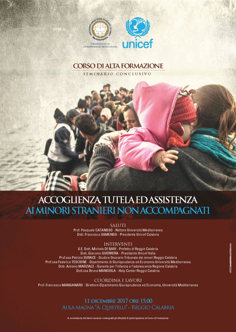 L’undici dicembre alle ore 15.00, nell’Aula magna “A. Quistelli”, si è svolto il Seminario conclusivo del corso di alta formazione in “Accoglienza e tutela ai minori stranieri non accompagnati”, organizzato dal Dipartimento DiGiEc e dall’Unicef.