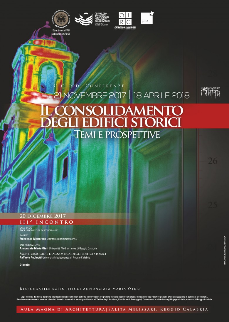 Nata all’interno del corso di consolidamento degli edifici storici del corso di laurea magistrale in Architettura-Restauro del Dipartimento PAU, l’iniziativa, in collaborazione con l’Ordine degli architetti della provincia di Reggio Calabria, intende portare l’attenzione di studenti e professionisti architetti e ingegneri, sul tema complesso del rinforzo strutturale dell’edilizia storica con particolare riferimento alla sicurezza sismica. Il ciclo di conferenze che vede coinvolti docenti universitari con grande esperienza nel settore, si incentrerà sul rapporto, piuttosto controverso, tra sicurezza strutturale e rispetto dei valori autentici degli edifici su cui intervenire e dunque al rapporto fra progetto di consolidamento e progetto di restauro di un dato edificio.