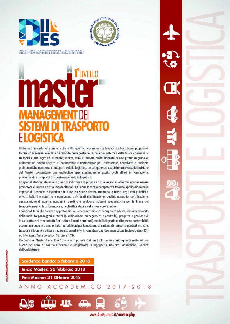 Presso l’Università Mediterranea di Reggio Calabria è stata attivata la seconda edizione del Master universitario di primo livello in Management dei Sistemi di Trasporto e Logistica.