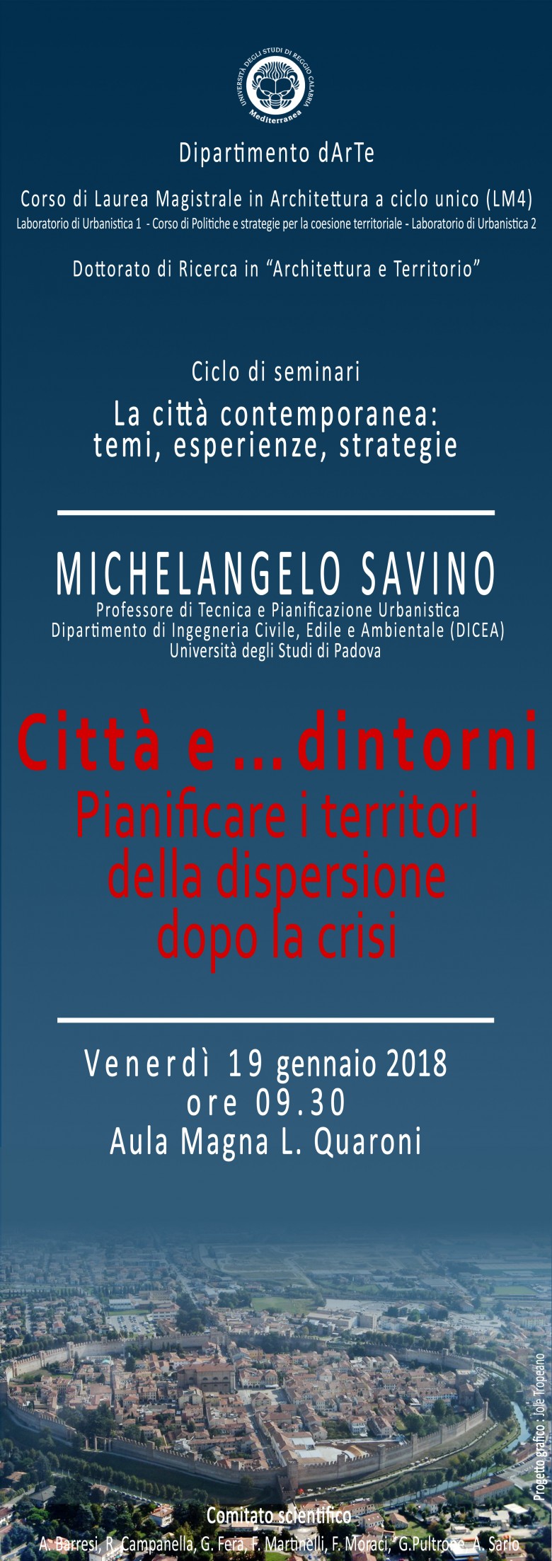 Venerdì 19 gennaio alle ore 9.30, presso l’Aula Magna Ludovico Quaroni, Michelangelo Savino, professore di Tecnica e Pianificazione urbanistica presso il Dipartimento di Ingegneria civile, edile e ambientale dell’Università degli Studi di Padova, terrà il seminario “Città e … dintorni. Pianificare i territori della dispersione dopo la crisi”.