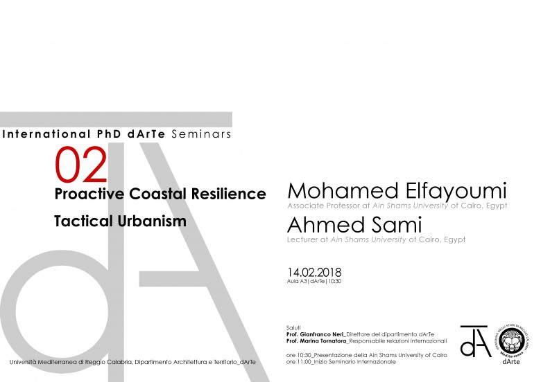 Continua il ciclo International PhD dArTe - Seminars del Dottorato in Architettura e Territorio con la lezione dei professori Mohamed Elfayoumi e Ahmed Sami della Ain-Shams University del Cairo, Egitto.