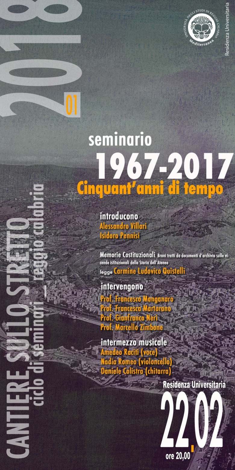 Quest’anno, presso la Biblioteca della Residenza Universitaria di via Manfroce, si svolgerà un ciclo di seminari dal titolo “CANTIERE SULLO STRETTO”. Si tratta di un ciclo dei seminari che coincide con l’anniversario temporale dei cinquant’anni di fondazione dell’Istituto Universitario di Architettura di Reggio Calabria. I diversi incontri programmati affronteranno il tema della promozione culturale e del ruolo che l’Istituzione Universitaria ha svolto nel tempo in rapporto con la città di Reggio Calabria.
