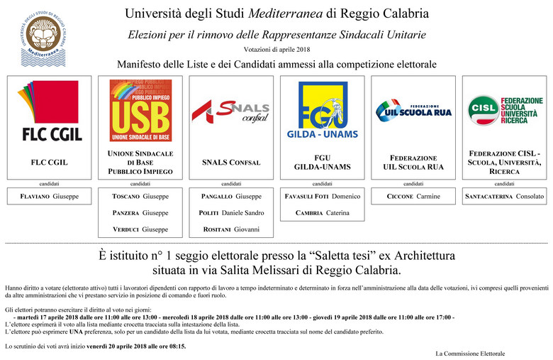Elezioni per il rinnovo della Rappresentanza Sindacale Unitaria (RSU) 2018