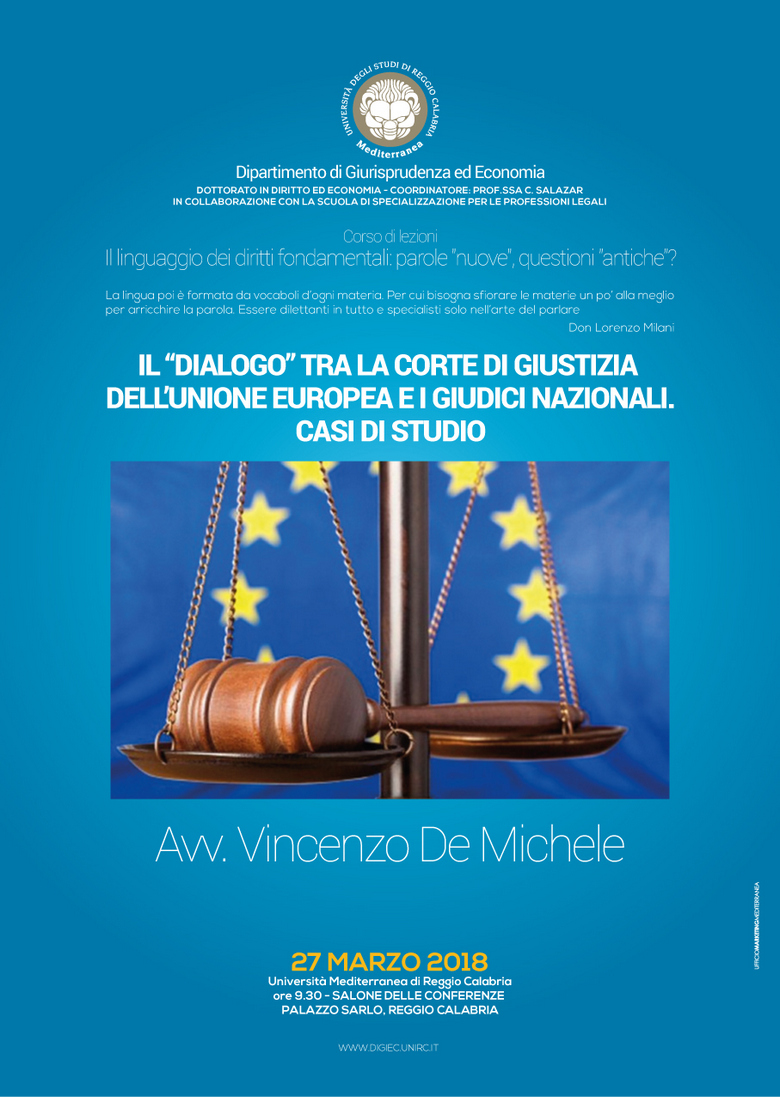 27 marzo Vincenzo De Michele: dialogo tra giustizia europea e giudici nazionali