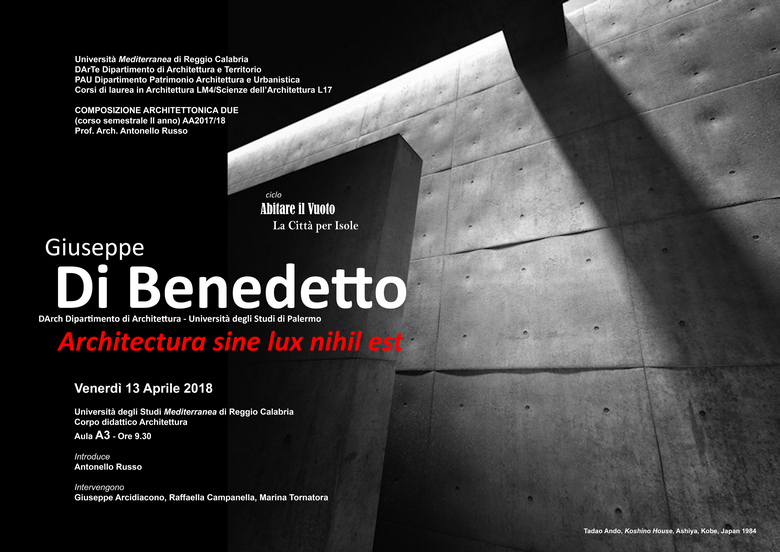 Il dialogo con Di Benedetto prevede un dibattito aperto con gli studenti, stimolati a porre le proprie riflessioni sulla composizione dello spazio in architettura. A commento delle tematiche sollevate si alterneranno gli interventi di: