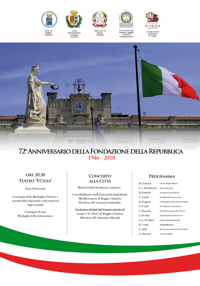 I festeggiamenti proseguiranno alle 20.30 presso il Teatro Comunale F. Cilea con il concerto del Coro Polifonico dell'Università Mediterranea, per celebrare insieme l’anniversario fondativo.