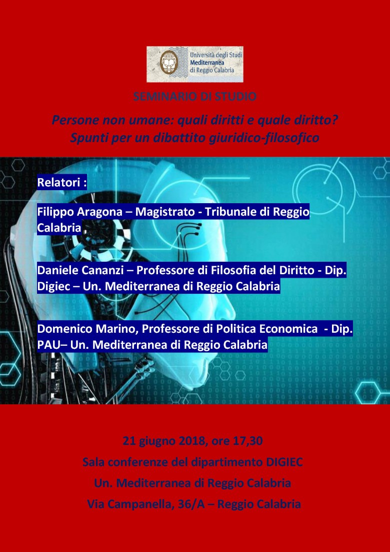 21 giugno Seminario Persone non umane: quali diritti e quale diritto? Spunti per un dibattito giuridico-filosofico?
