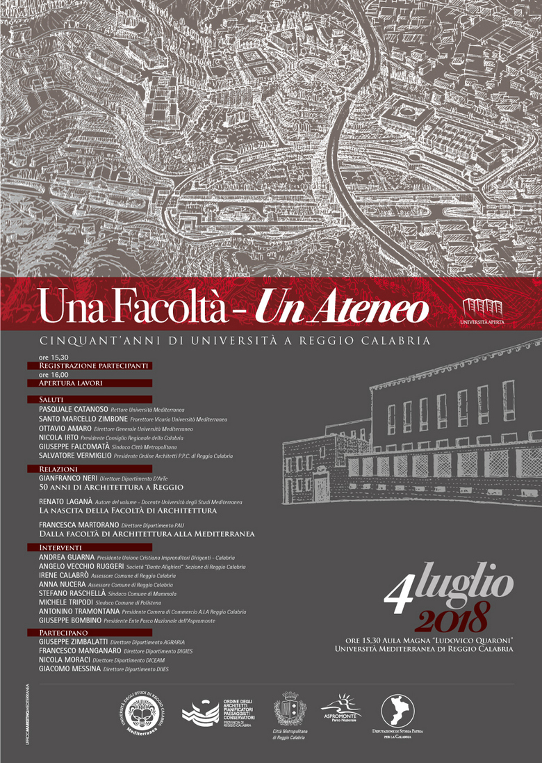 Mercoledì 4 luglio 2018 alle ore 16,00 presso l’Aula Magna Ludovico Quaroni, alla presenza del Magnifico Rettore Pasquale Catanoso, del Presidente del Consiglio regionale Nicola Irto, del Sindaco della Città Metropolitana di Reggio Calabria Giuseppe Falcomatà, del Presidente dell’Ordine degli Architetti della provincia di Reggio Calabria Salvatore Vermiglio, si è tenuto un seminario per ricordare questo evento così importante per la società civile e culturale della città di Reggio e della Calabria intera.