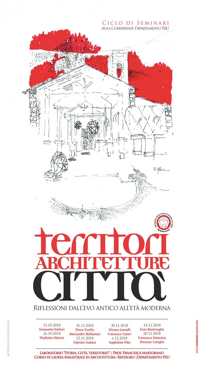 Il programma dei seminari del Laboratorio di “Storia, città, territorio” del corso di laurea magistrale in Architettura-Restauro del Dipartimento PAU, docente la professoressa Francesca Martorano, avrà inizio il prossimo 12 ottobre. I seminari si svolgeranno nei mesi di ottobre, novembre e dicembre 2018.