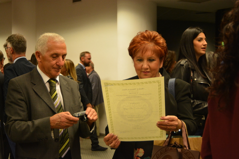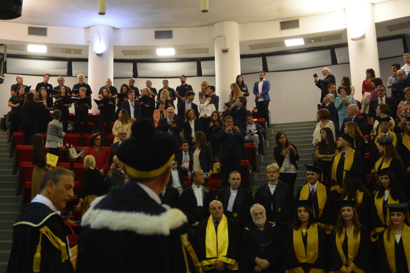 Ad ogni neo-dottore ed ai direttori di dipartimento uscenti (Neri, Moraci, Messina e Manganaro) è stata donata la spilla con il logo dell'Ateneo. A seguire, per tutti è stato offerto un rinfresco in Atelier.