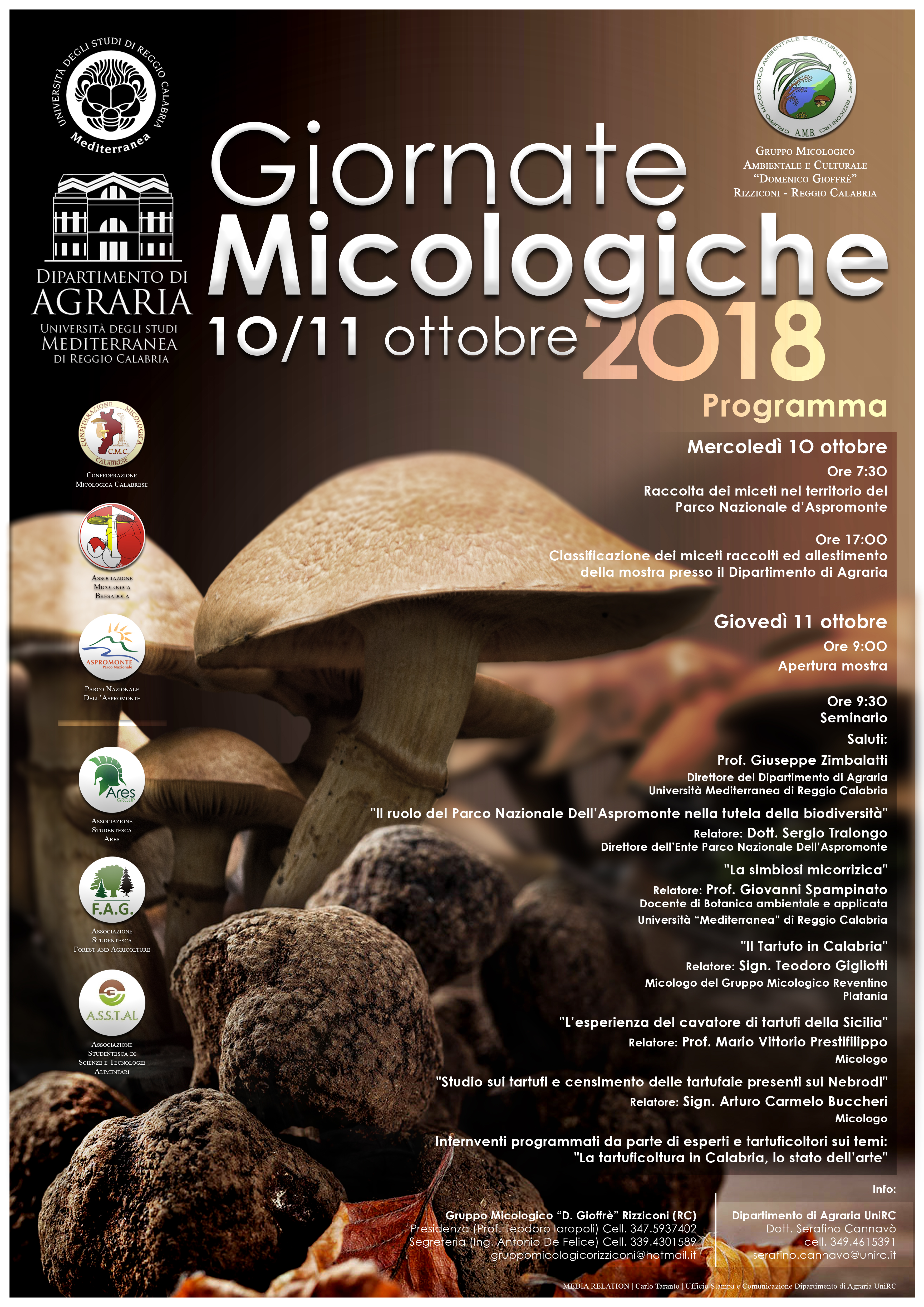 Home page Il 10 e 11 di ottobre prossimi, il Dipartimento di Agraria dell’Università Mediterranea, ospiterà le “Giornate Micologiche” giunte alla loro quinta edizione.