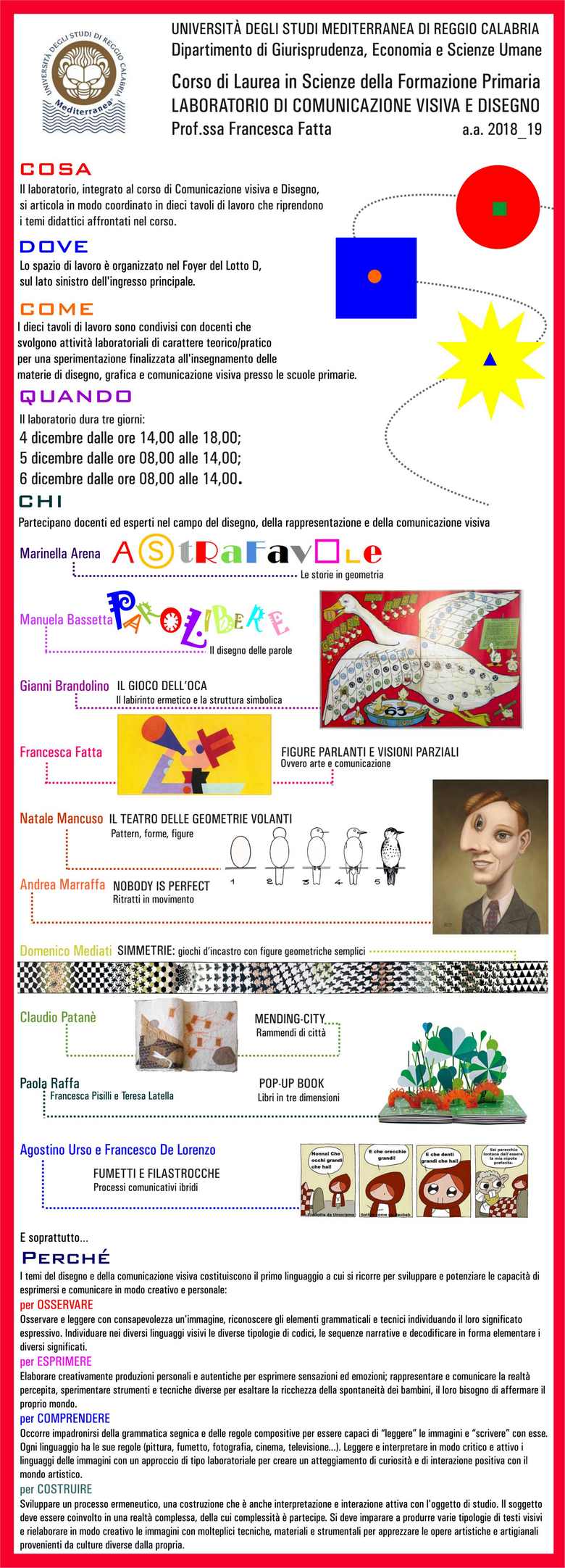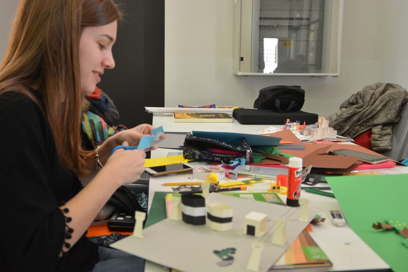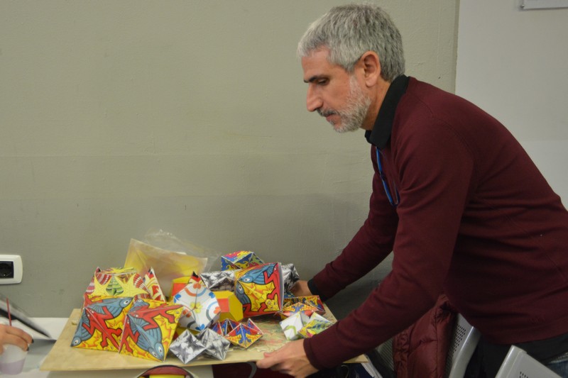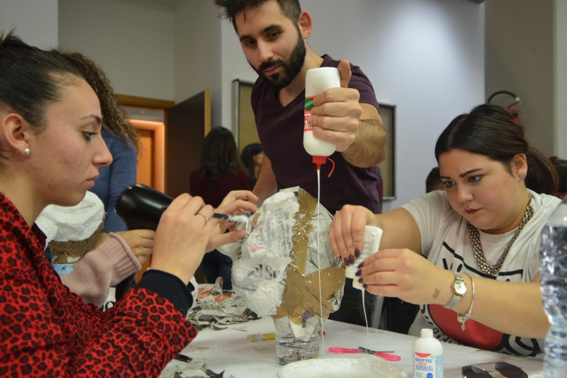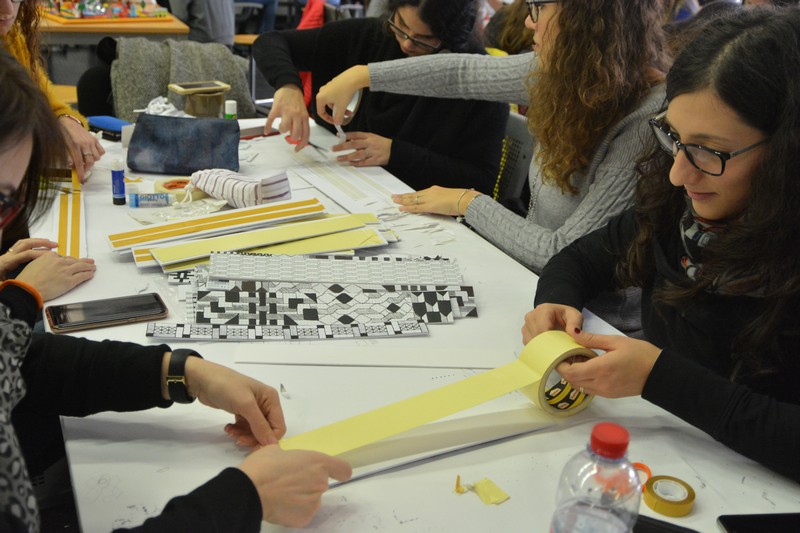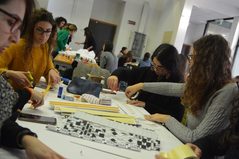 Si è svolto nelle giornate del 4, 5 e 6 dicembre il primo laboratorio di Comunicazione visiva e disegno del nuovo Corso di studi Magistrale in Scienze della formazione primaria, condotto dalla professoressa Francesca Fatta. Un happening di creatività e artigianato in cui pittura, fumetto, fotografia, arte e geometria si sono mescolati e integrati per sperimentare la lettura delle immagini e comporre con esse.