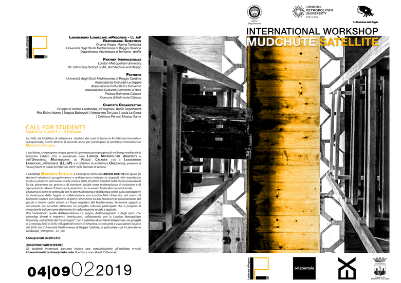 La CALL ha l’obiettivo di selezionare studenti dei corsi di laurea in Architettura triennale e quinquennale, iscritti almeno al secondo anno, per partecipare al workshop internazionale MUDCHUTE SATELLITE.