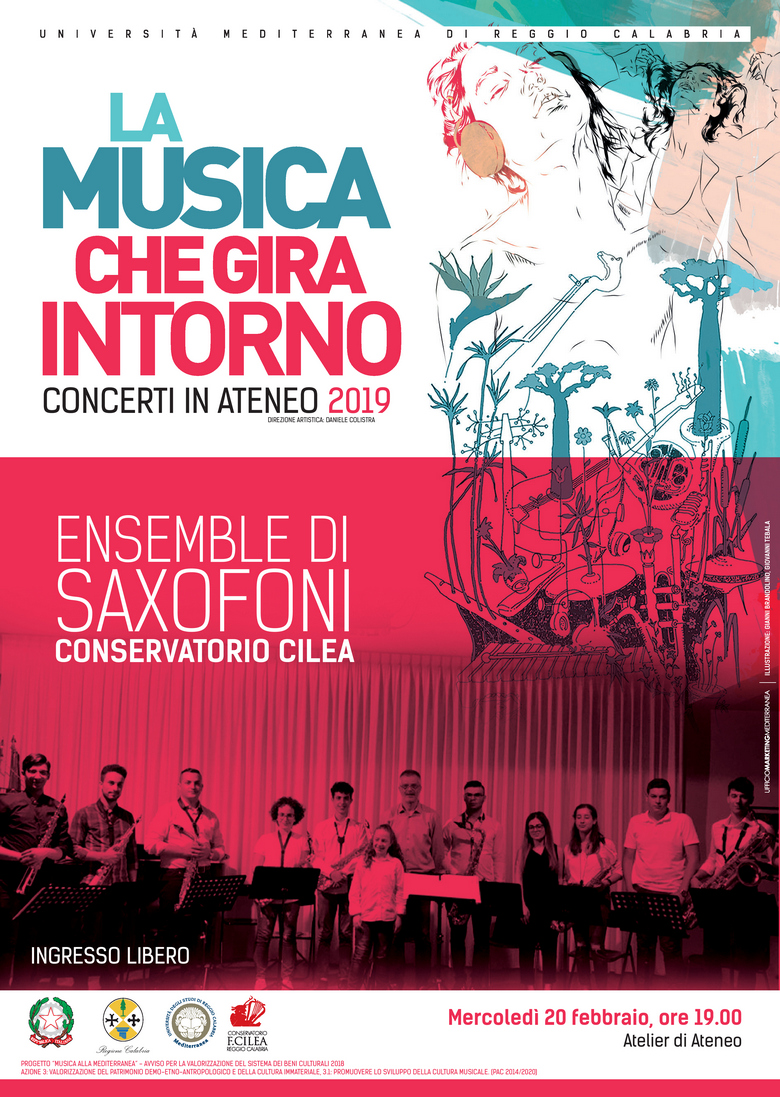 L'Ensemble di saxofoni del Conservatorio Cilea si esibirà nell'Atelier di Architettura, mercoledì 20 febbraio per il quarto concerto de "La Musica che gira intorno 2019".