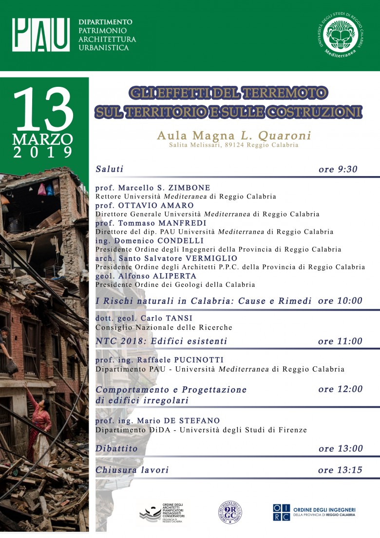 13 marzo Seminario Gli effetti del terremoto sul territorio e sulle costruzioni