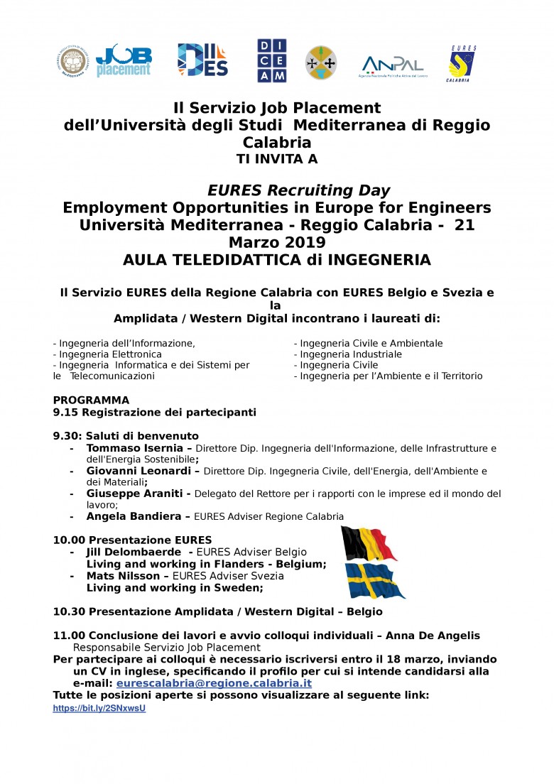Il Servizio Job Placement dell’Università degli Studi Mediterranea TI INVITA A