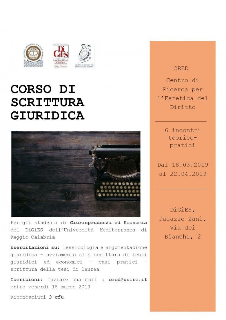 Anche per l'a.a. 2018/2019 il CRED - Centro di Ricerca per l'Estetica del Diritto organizza il Corso libero di Scrittura Giuridica tenuto dalla dott.ssa Serena Minnella e dalla prof.ssa Carla Scaglioni.