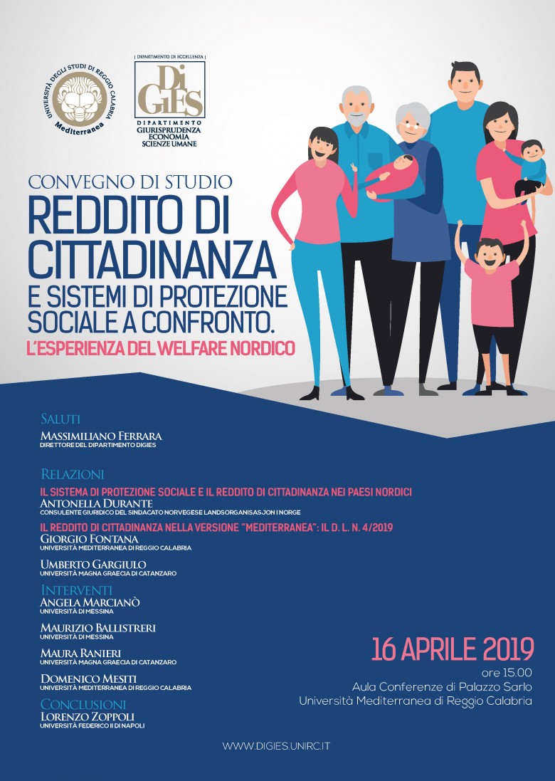 Martedì 16 aprile ore 15.00, nell'aula conferenze di Palazzo Sarlo, si terra il convegno di studio Reddito di cittadinanza e sistemi di protezione sociale a confronto. L'esperienza del welfare nordico.