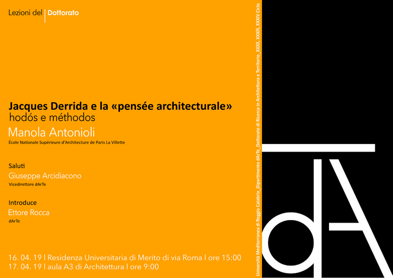 16-17 aprile Manola Antonioli, “Jacques Derrida e la «pensée architecturale»: hodós e méthodos”