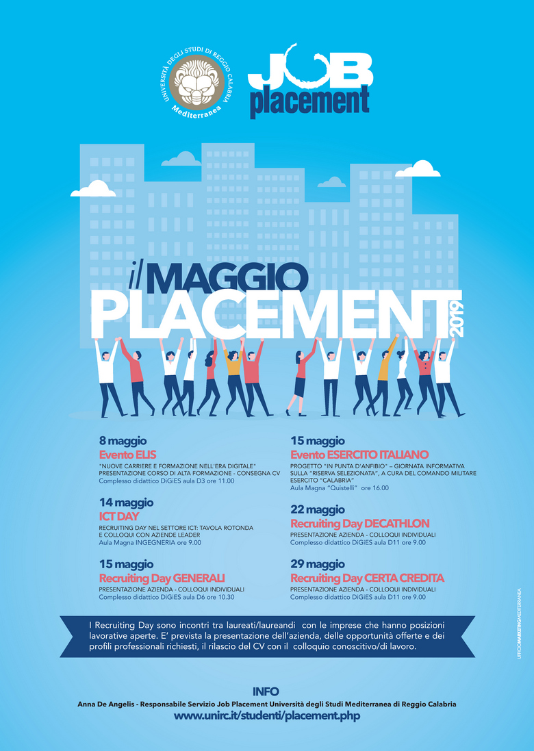 Il Servizio Job Placement della Mediterranea invita studenti laureandi e laureati a partecipare ad eventi e recruiting day in programma nel mese di maggio.