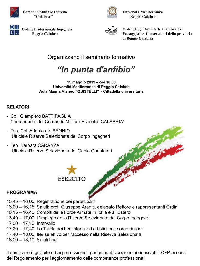 al Seminario formativo “In punta d’anfibio” - Esercito Italiano Comando Militare esercito “Calabria”