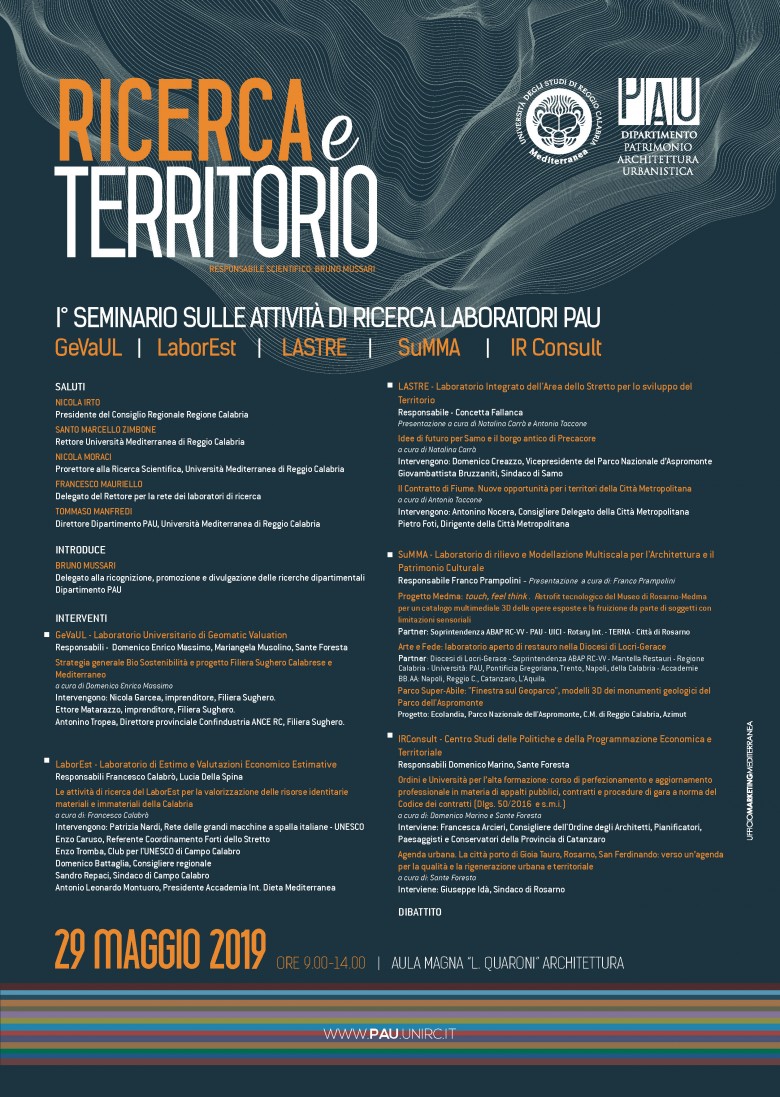 29 maggio Ricerca e Territorio: I° Seminario sull'attività di ricerca dei Laboratori del Dipartimento PAU