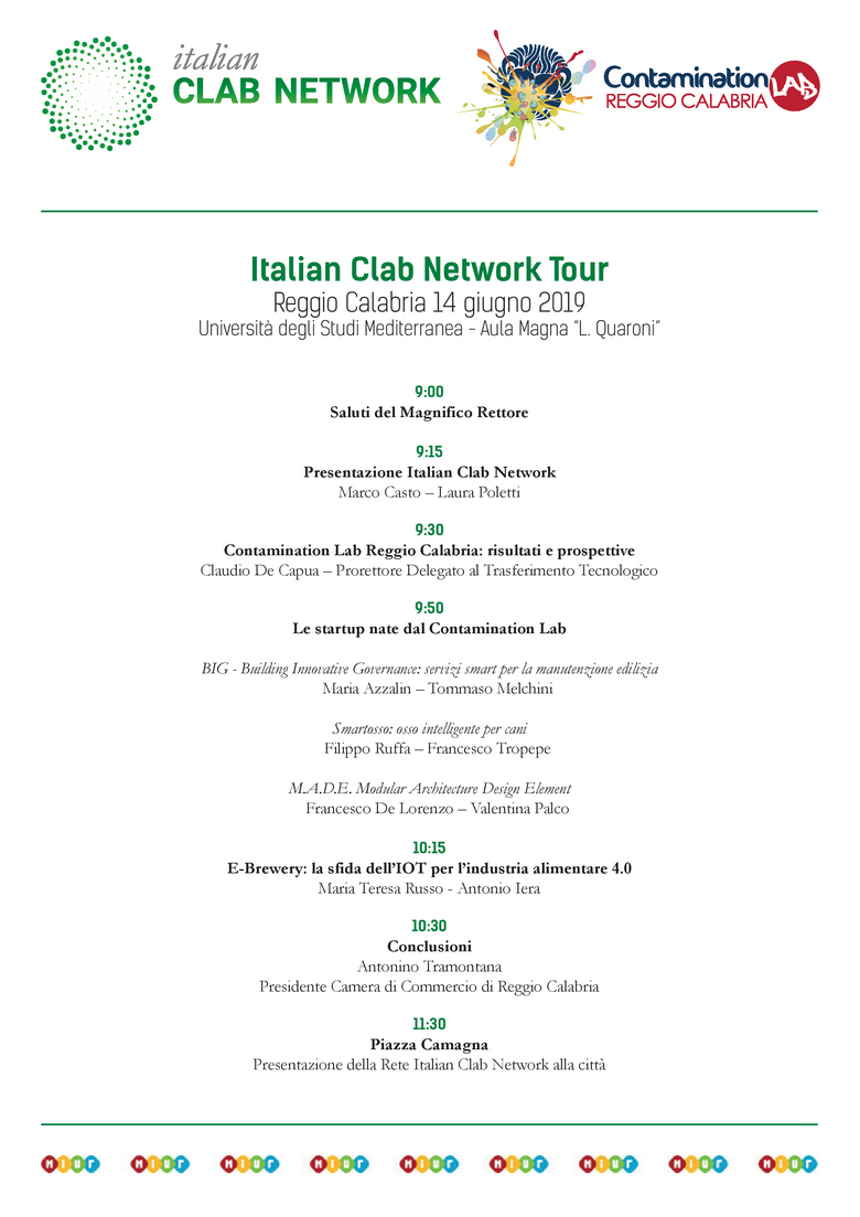 Il road show itinerante sta facendo visita a tutti gli Atenei che in questi anni hanno dato origine ad un Contamination Lab al proprio interno; ogni tappa è finalizzata alla conoscenza delle specificità dei singoli CLab grazie all’organizzazione di eventi tesi al racconto di una delle tematiche imprenditoriali che li caratterizza.
