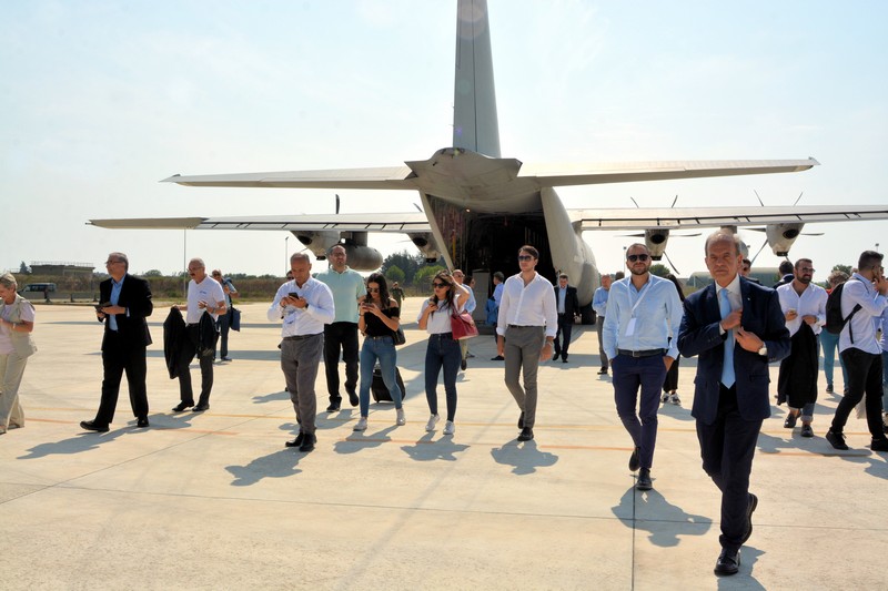 Nella mattina del 6 i partecipanti sono atterrati alla Base militare aereonautica di Gioia del Colle, sede del 36° stormo. Accolti dal colonnello Emanuele Spigolon, comandante della base, hanno ammirato da vicino i caccia Eurofighter Typhoon.