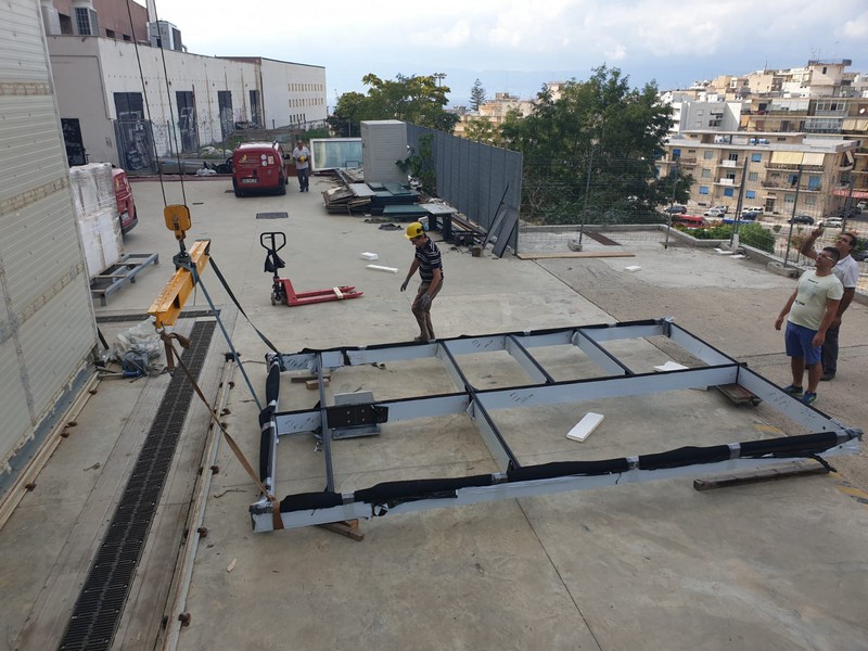 In preparazione delle attività di testing, presso il laboratorio in questi giorni si sta realizzando la struttura che “ospiterà” la facciata continua in montanti e traversi di alluminio con grandi vetri stratificati di ultima generazione. La facciata è progettata per edifici sottoposti a climi estremi, quindi a forti irraggiamenti solari, rapide escursioni termiche, alti stress da carico e pressione del vento.