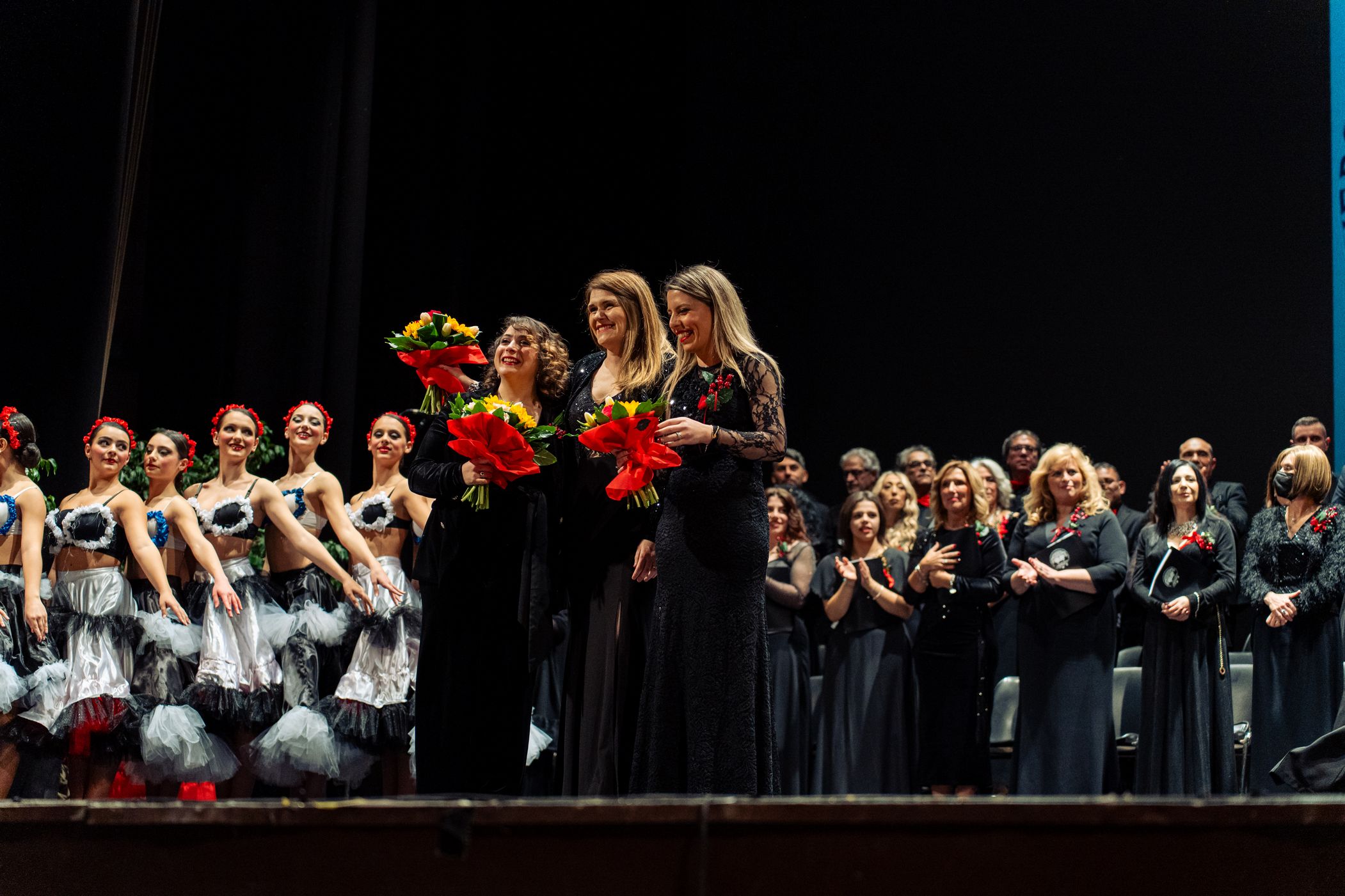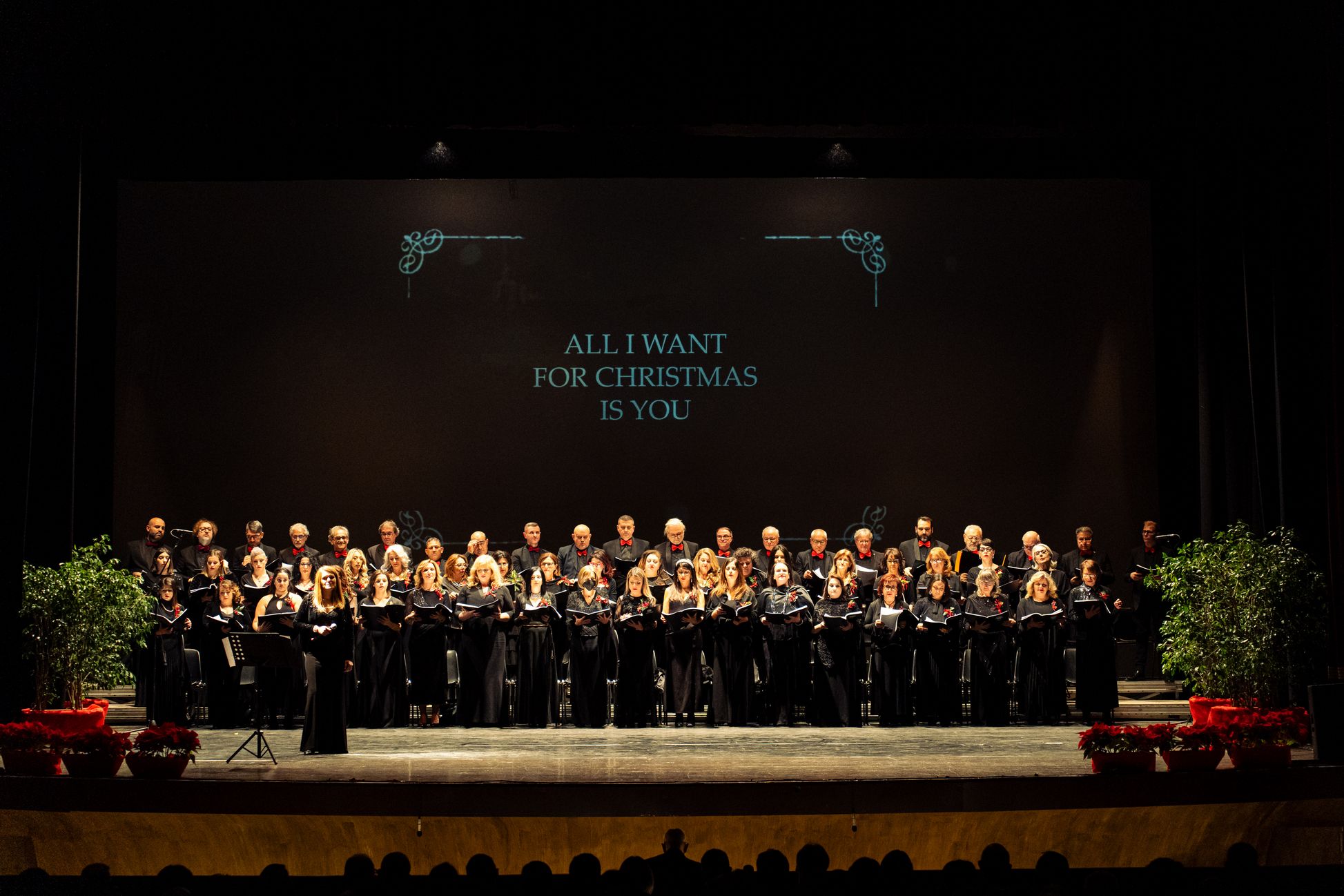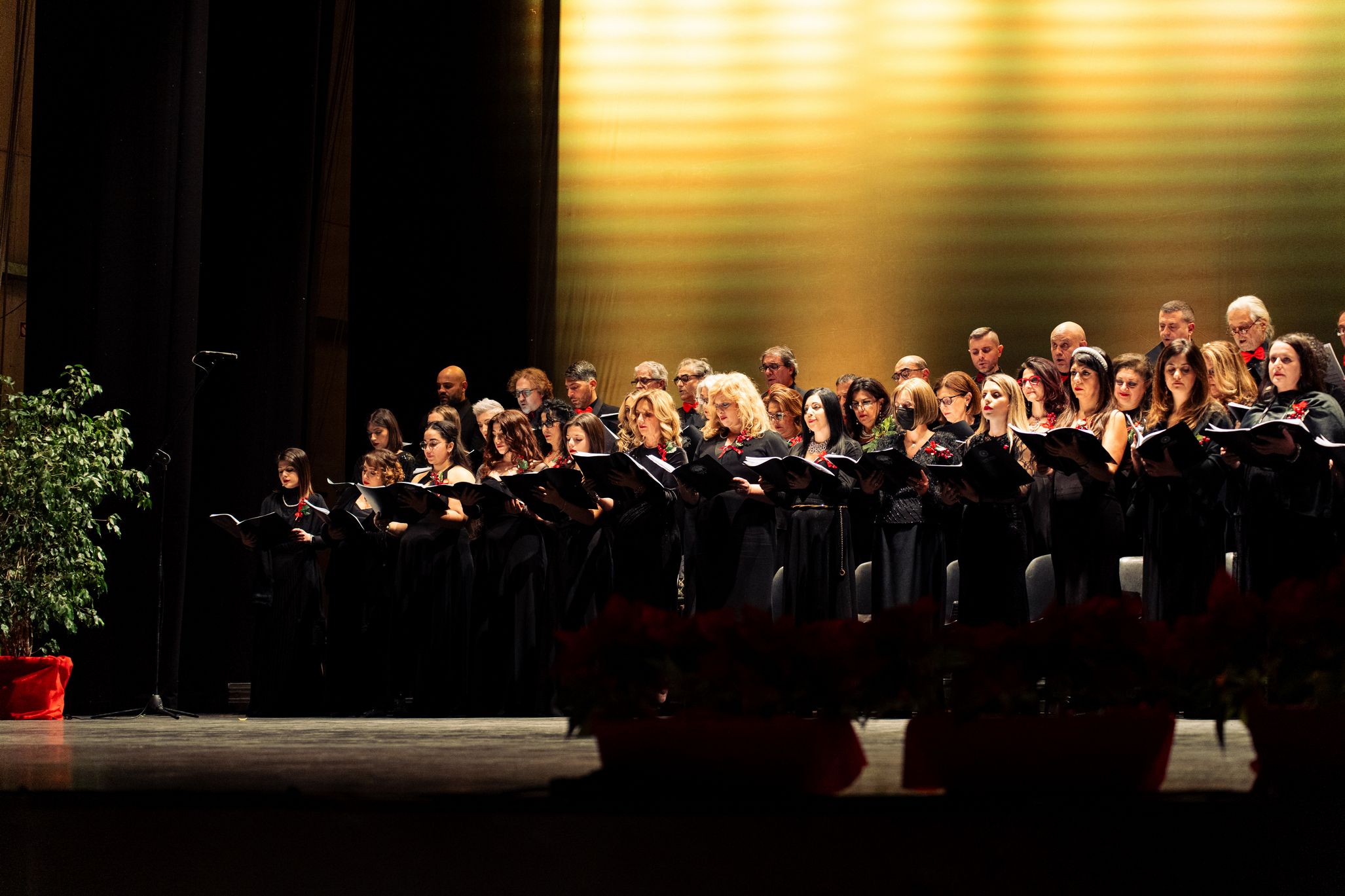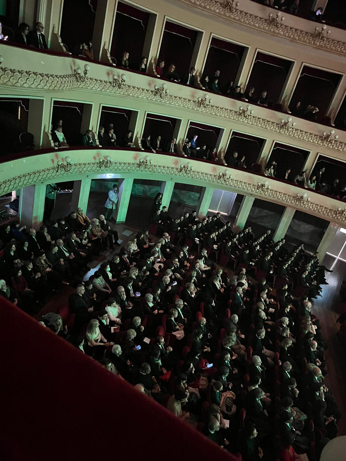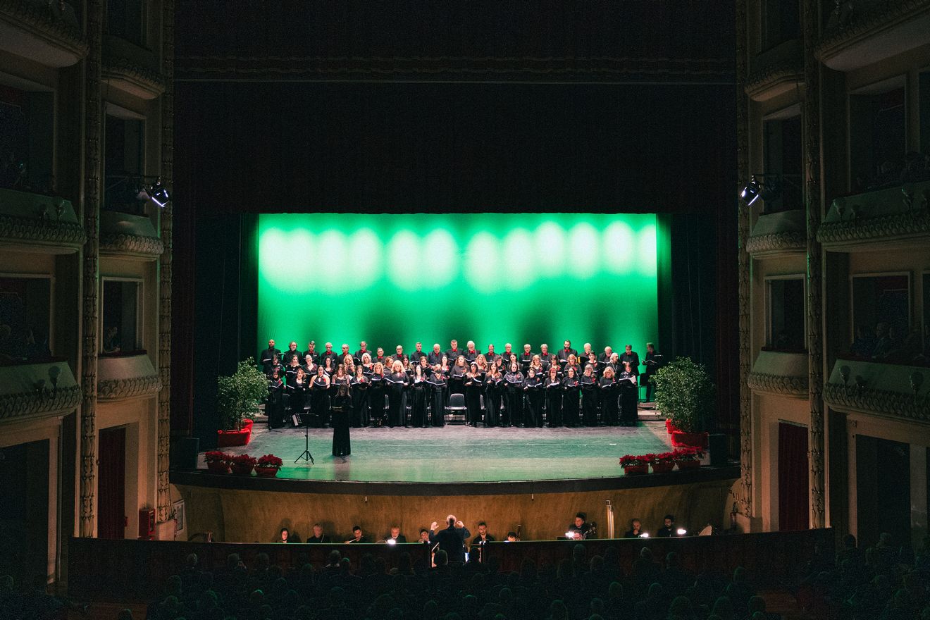 Sul palco, emozionante esibizione del Coro Polifonico dell'Università Mediterranea, guidato dai Maestri del coro Carmen Cantarella e Claudio Bagnato assieme all'Orchestra del Teatro Francesco Cilea ed al Coro Lirico Francesco Cilea.