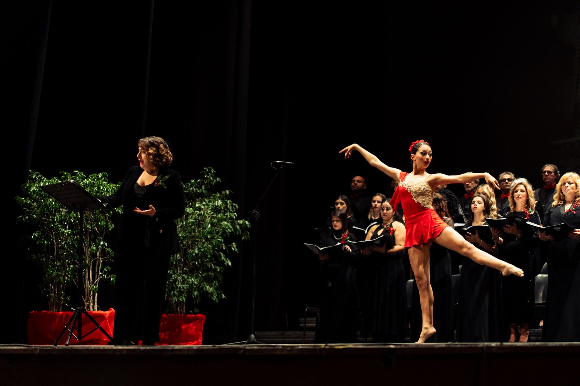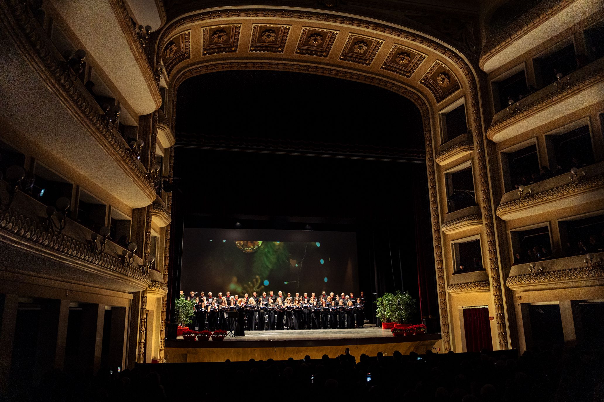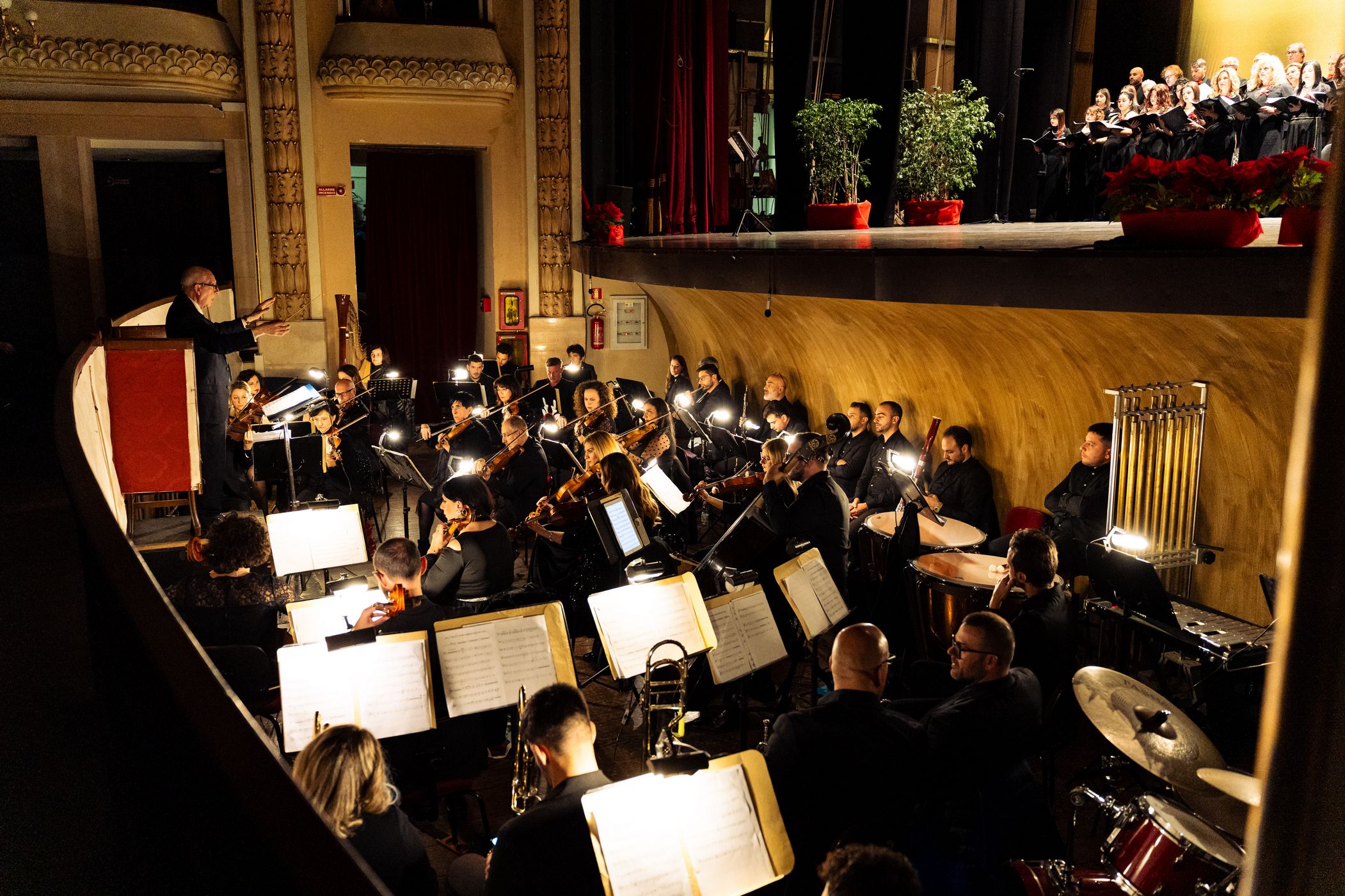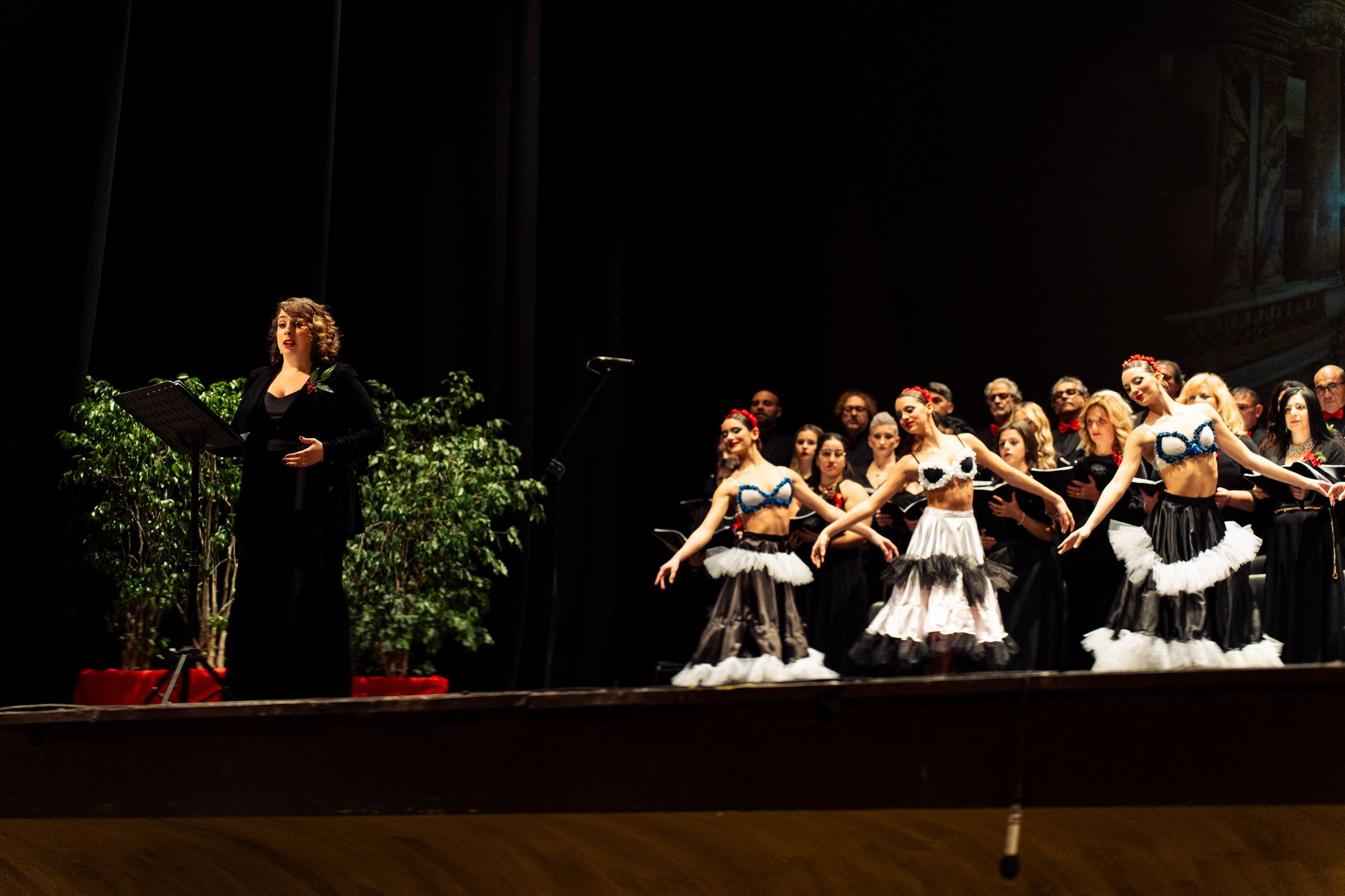 Sul palco, emozionante esibizione del Coro Polifonico dell'Università Mediterranea, guidato dai Maestri del coro Carmen Cantarella e Claudio Bagnato assieme all'Orchestra del Teatro Francesco Cilea ed al Coro Lirico Francesco Cilea.