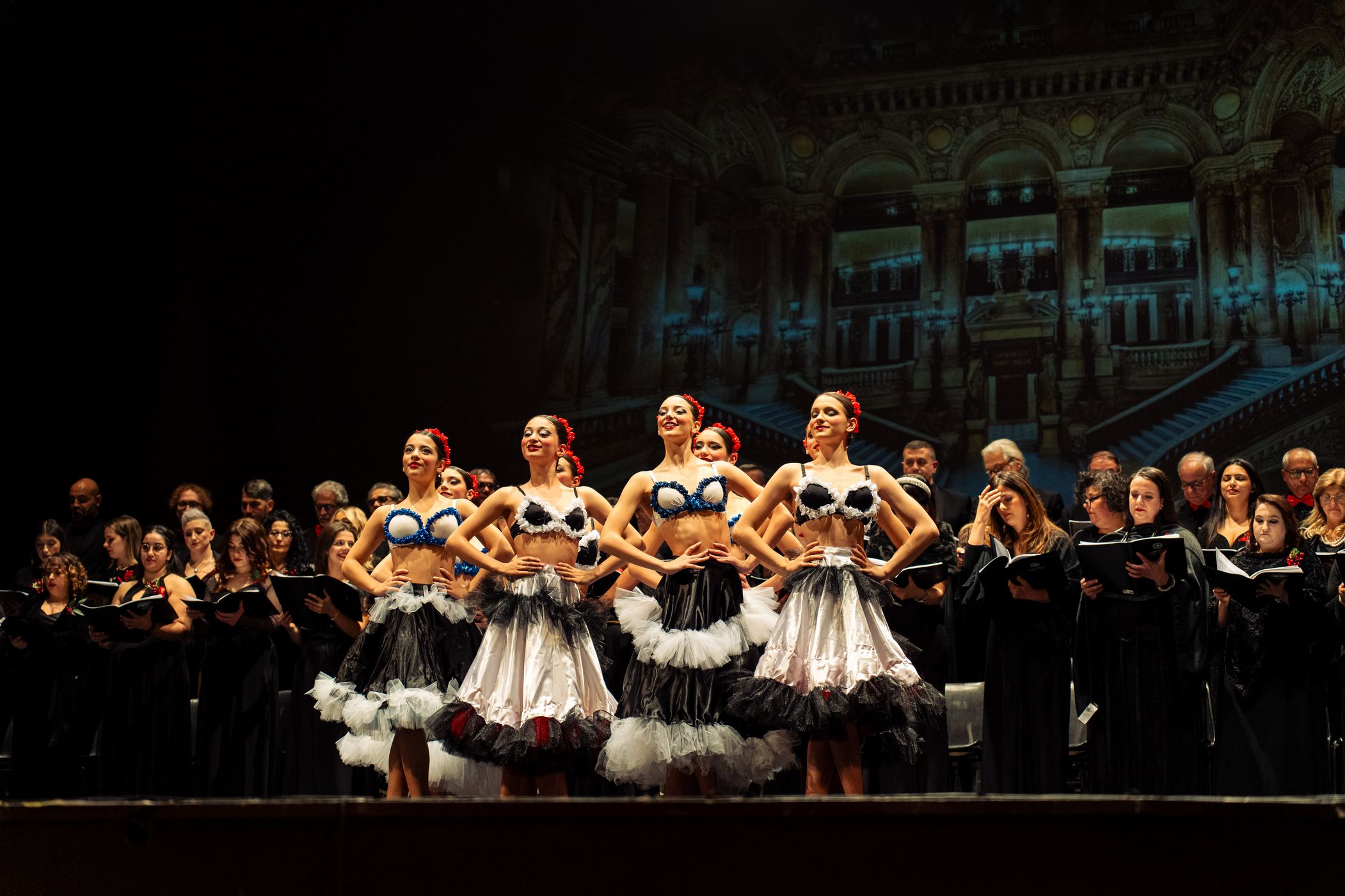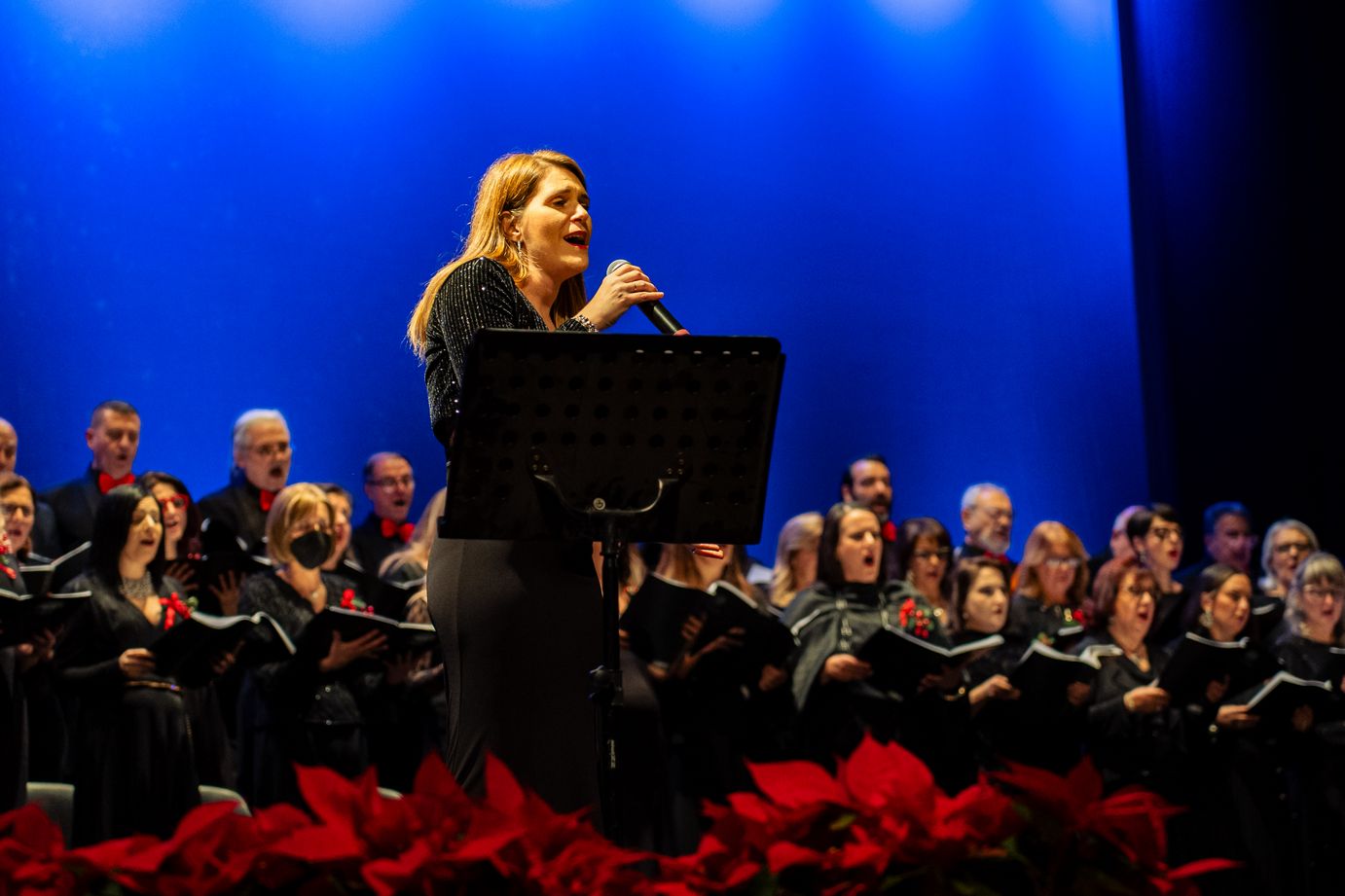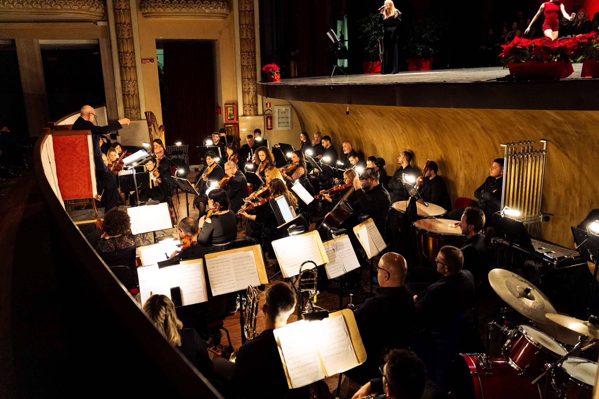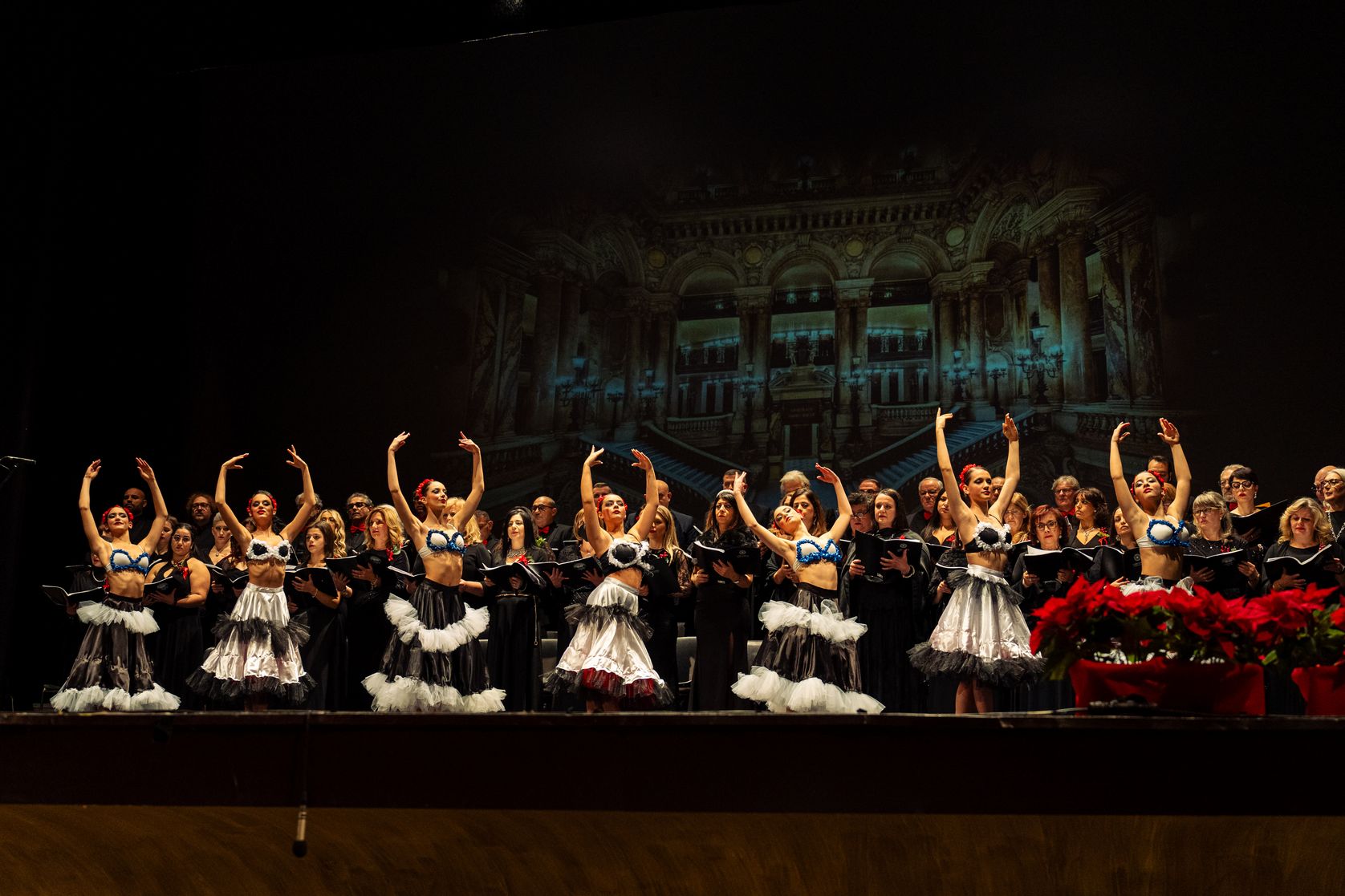 Sul palco, emozionante esibizione del Coro Polifonico dell'Università Mediterranea, guidato dai Maestri del coro Carmen Cantarella e Claudio Bagnato assieme all'Orchestra del Teatro Francesco Cilea ed al Coro Lirico Francesco Cilea.