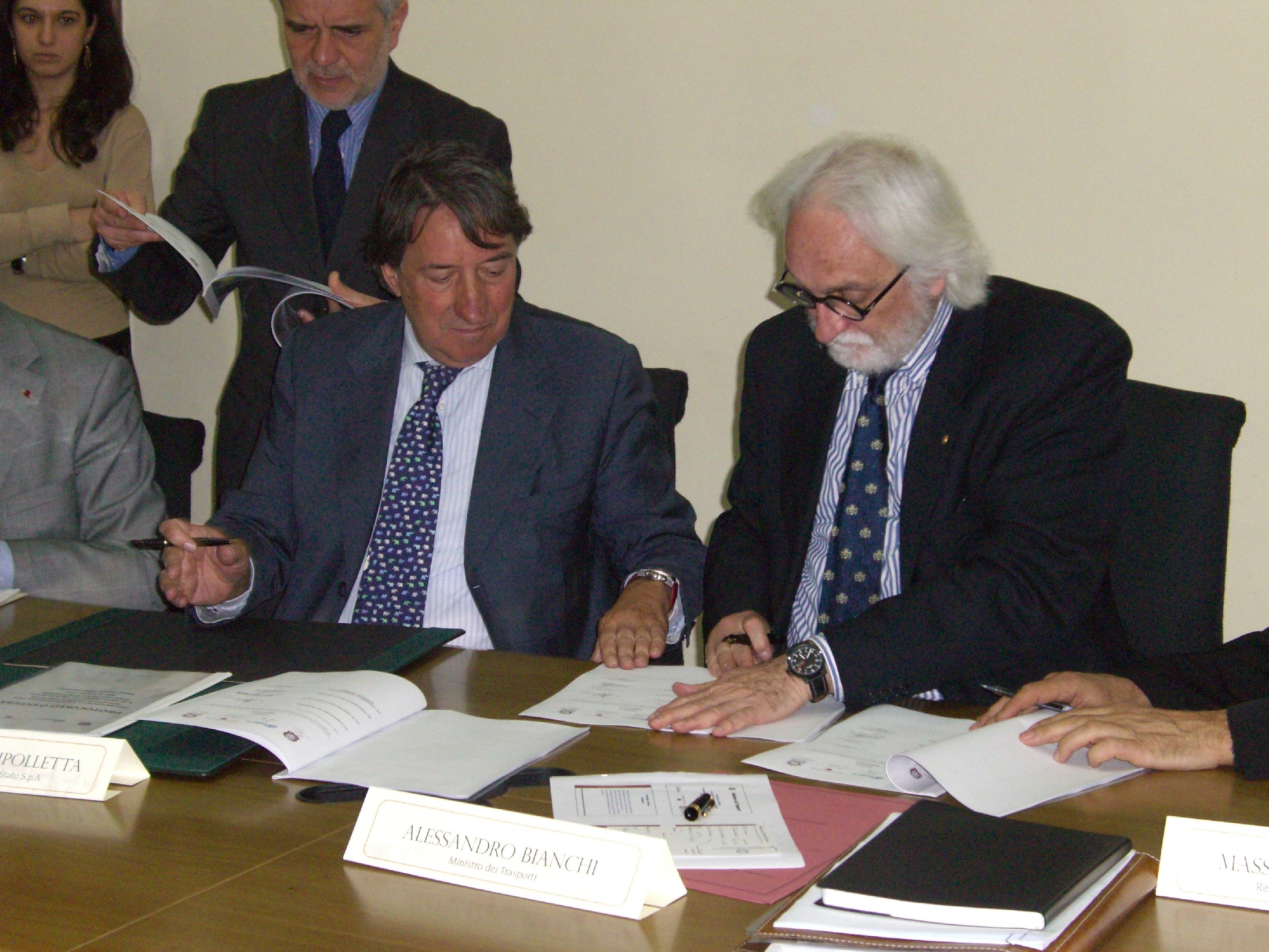 Alle ore 17,40 firmato il protocollo d'intesa, relativo al trasferimento tecnologico nella ricerca applicata al trasporto ferroviario nei vari aspetti: logistica, telecomunicazioni, pianificazione delle reti, sicurezza, ma anche studi relativi alle ricadute sul territorio (sostenibilità delle infrastrutture, impiego di energie alternative) e, nello scenario allargato al territorio nazionale, le tematiche relative al riutilizzo delle aree dimesse, salvaguardia del patrimonio storico ferroviario, recupero e conservazione di aree di archeologia industriale e analisi di compatibilità delle nuove reti rispetto alle peculiarità del territorio.