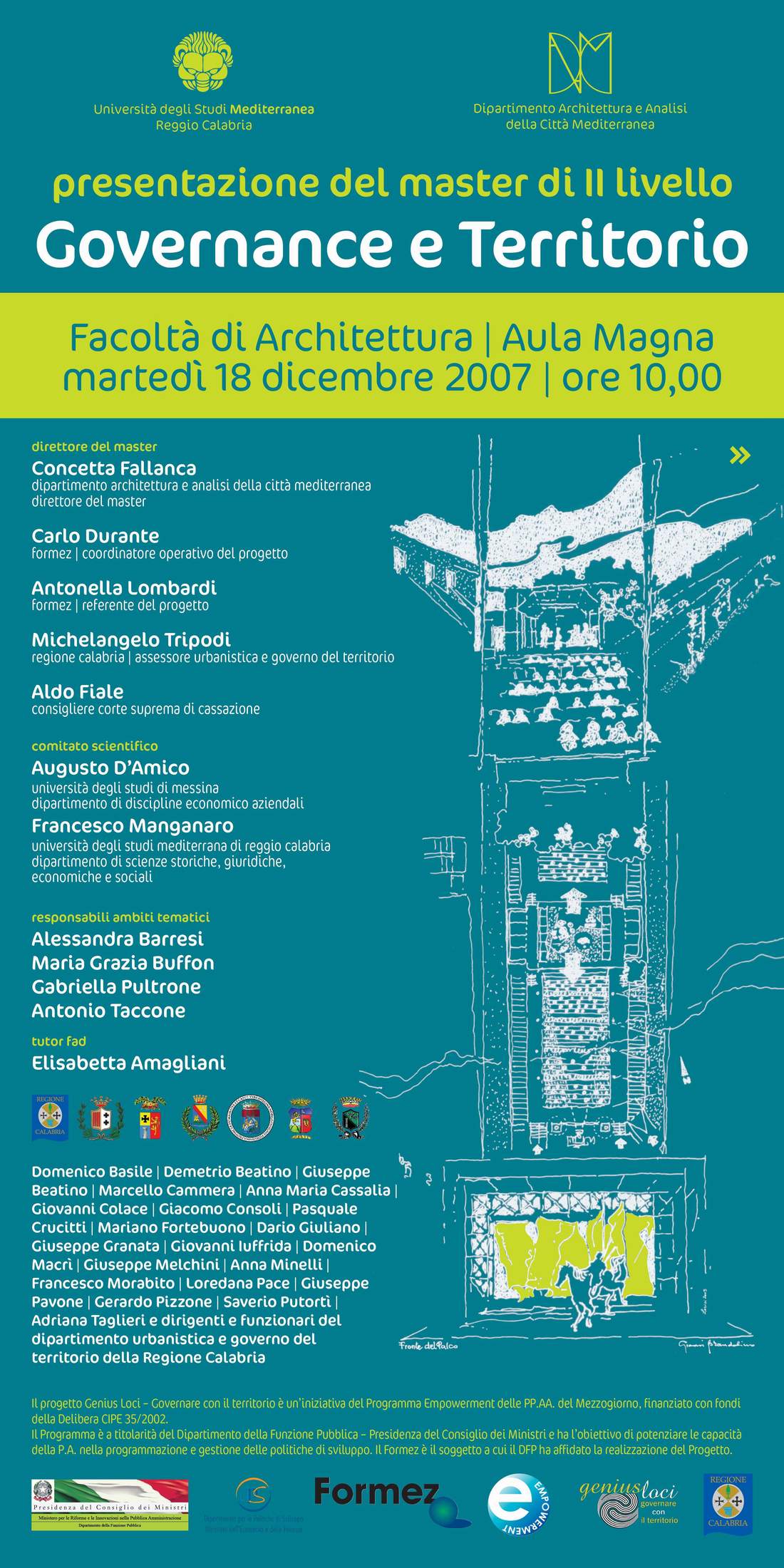 Il Master fa parte del progetto “Genius Loci - Governare con il territorio”, all’interno del Programma Empowerment delle PP. AA. del Mezzogiorno, ed è finanziato con i fondi della delibera CIPE n. 36 del 2002.