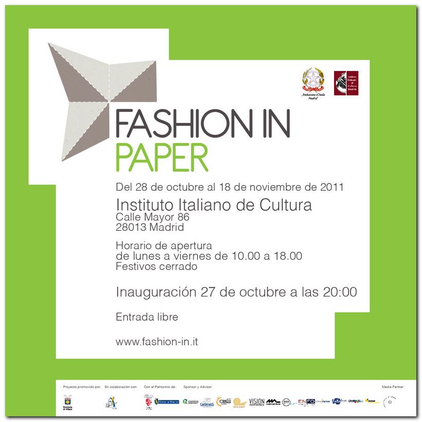 Ultima tappa della mostra di Fashion In Paper 2011 dal 27 ottobre al 18 novembre presso Istituto di Cultura Italiana a Madrid.