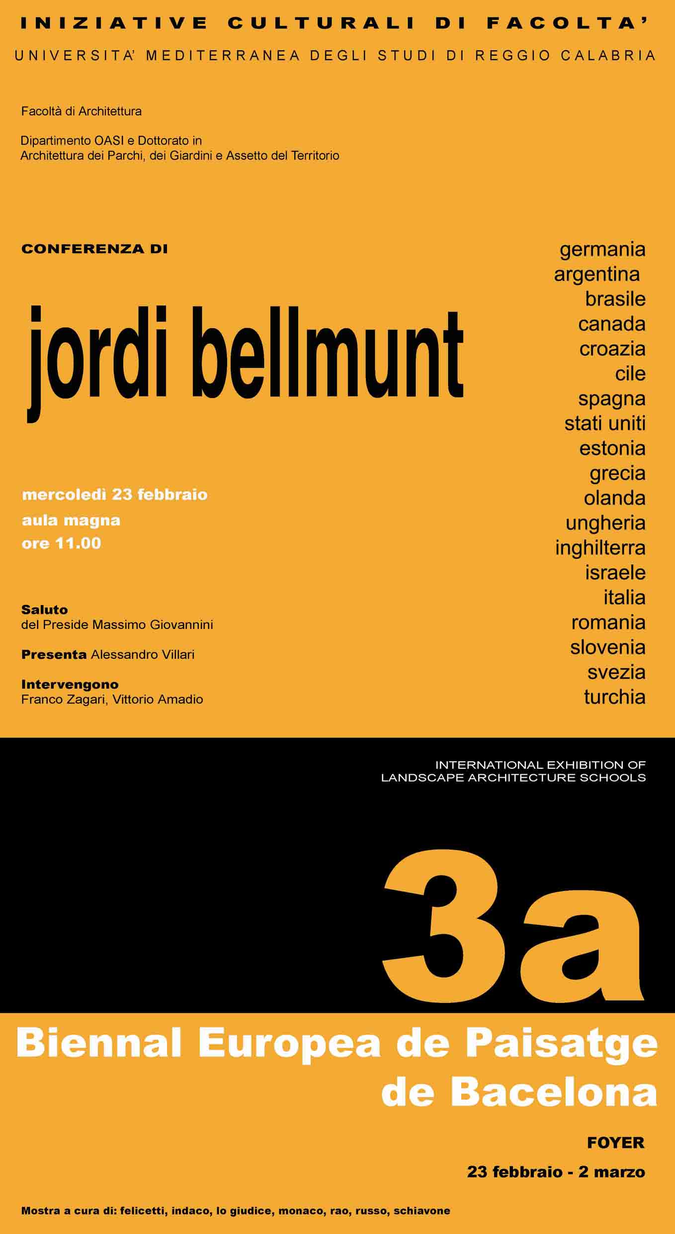 Aula magna facoltà di architettura ore 11.00 Biennale europea di paesaggio di Barcellona Mostra presso il Foyer dal 23 febbraio al 2 marzo